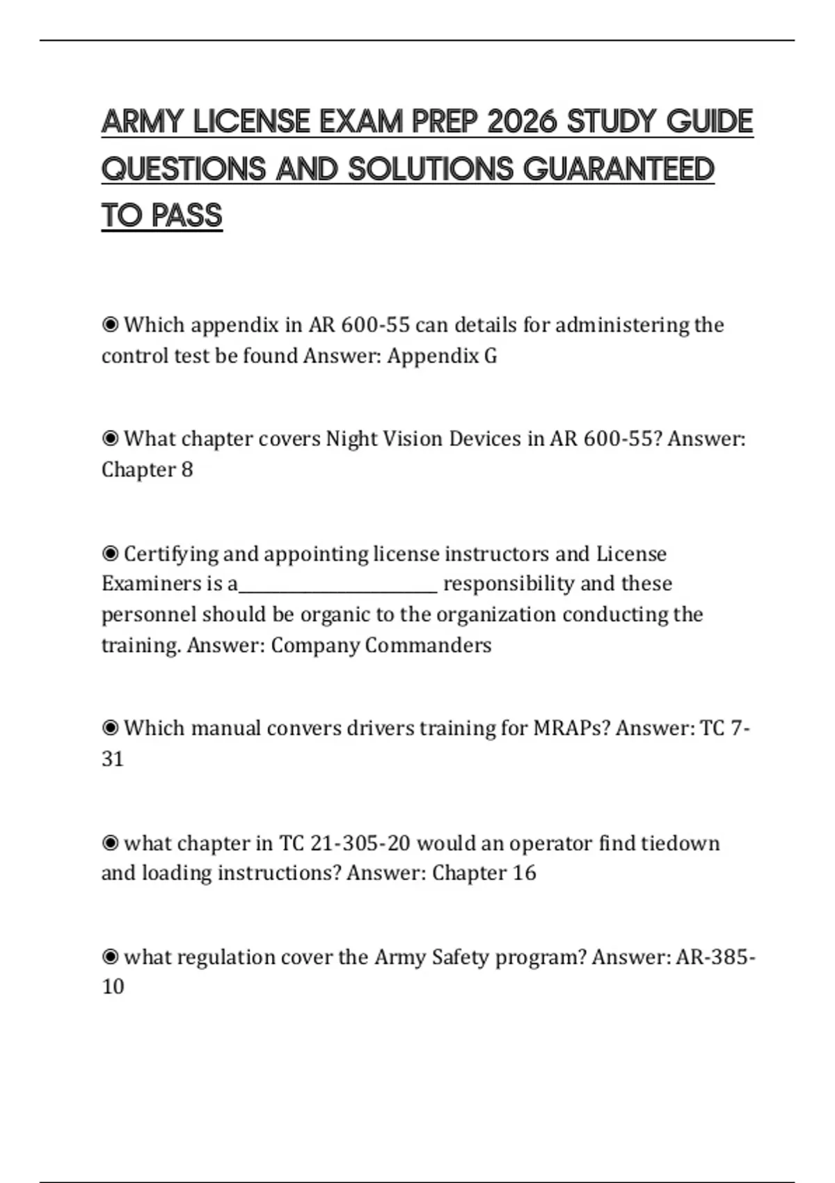 ARMY LICENSE EXAM PREP 2026 STUDY GUIDE QUESTIONS AND SOLUTIONS GUARANTEED TO PASS