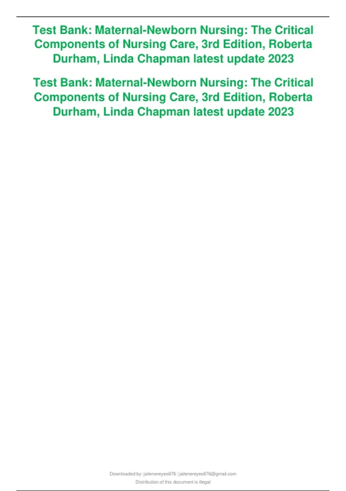 Test Bank: Maternal-Newborn Nursing: The Critical Components of Nursing Care, 3rd Edition, Roberta Durham, Linda Chapman latest update 2023