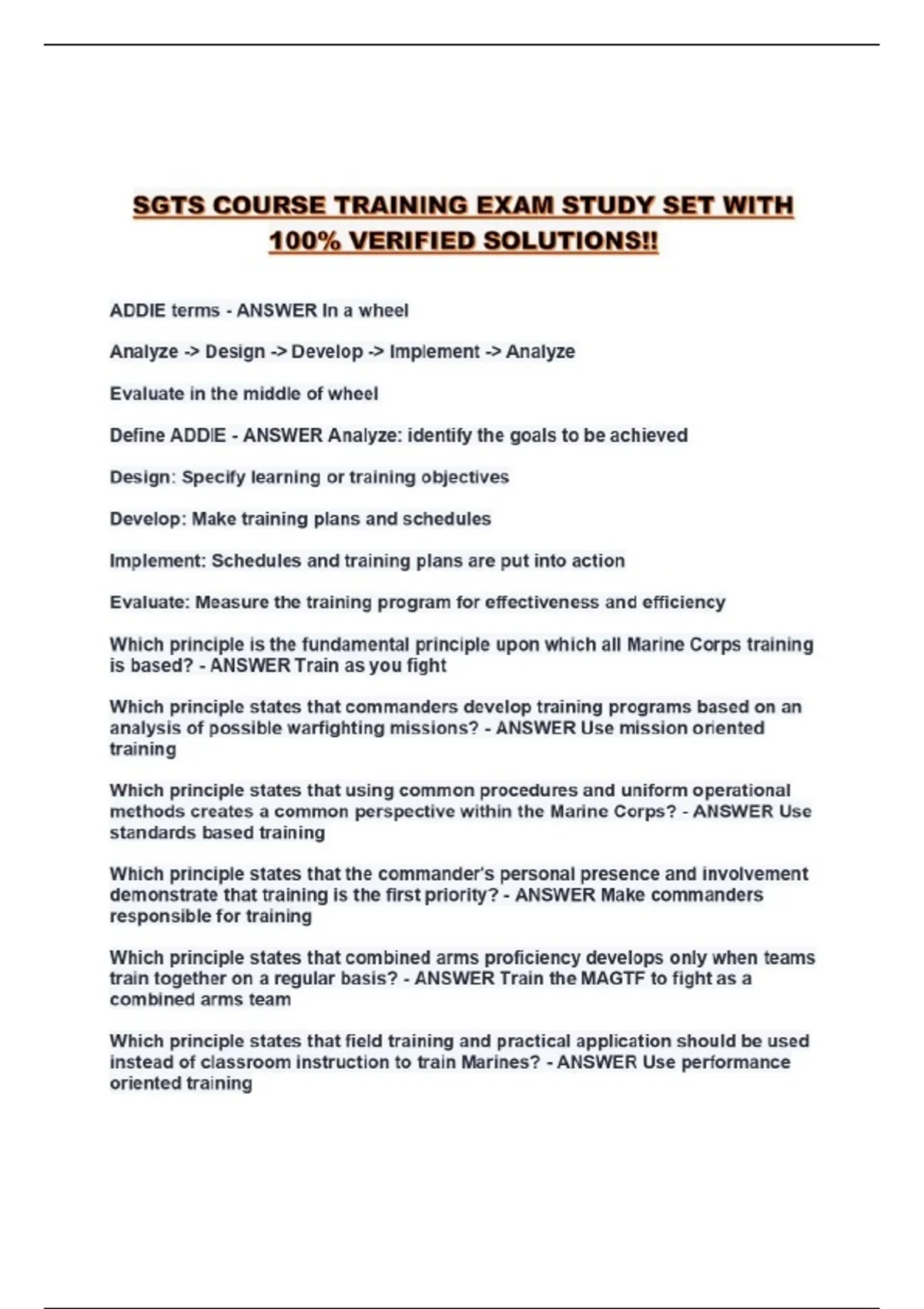 SGTS COURSE TRAINING EXAM STUDY SET WITH 100% VERIFIED SOLUTIONS!!...