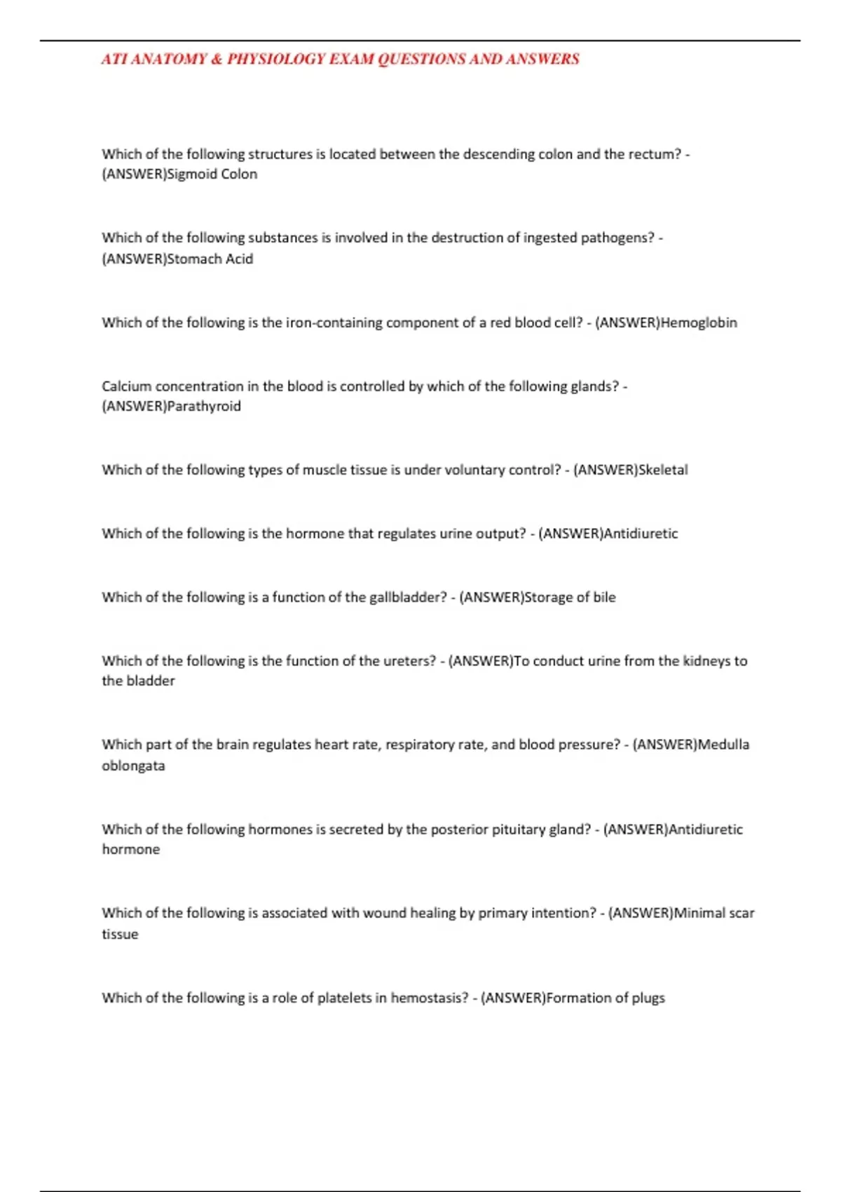 , ATI ANATOMY & PHYSIOLOGY EXAM QUESTIONS AND ANSWERS