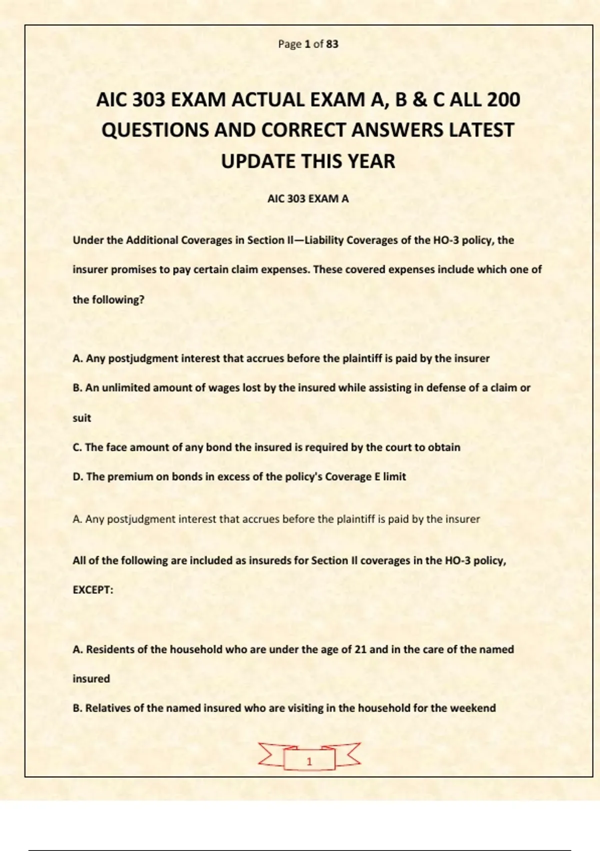 AIC 303 EXAM ACTUAL EXAM A, B & C ALL 200