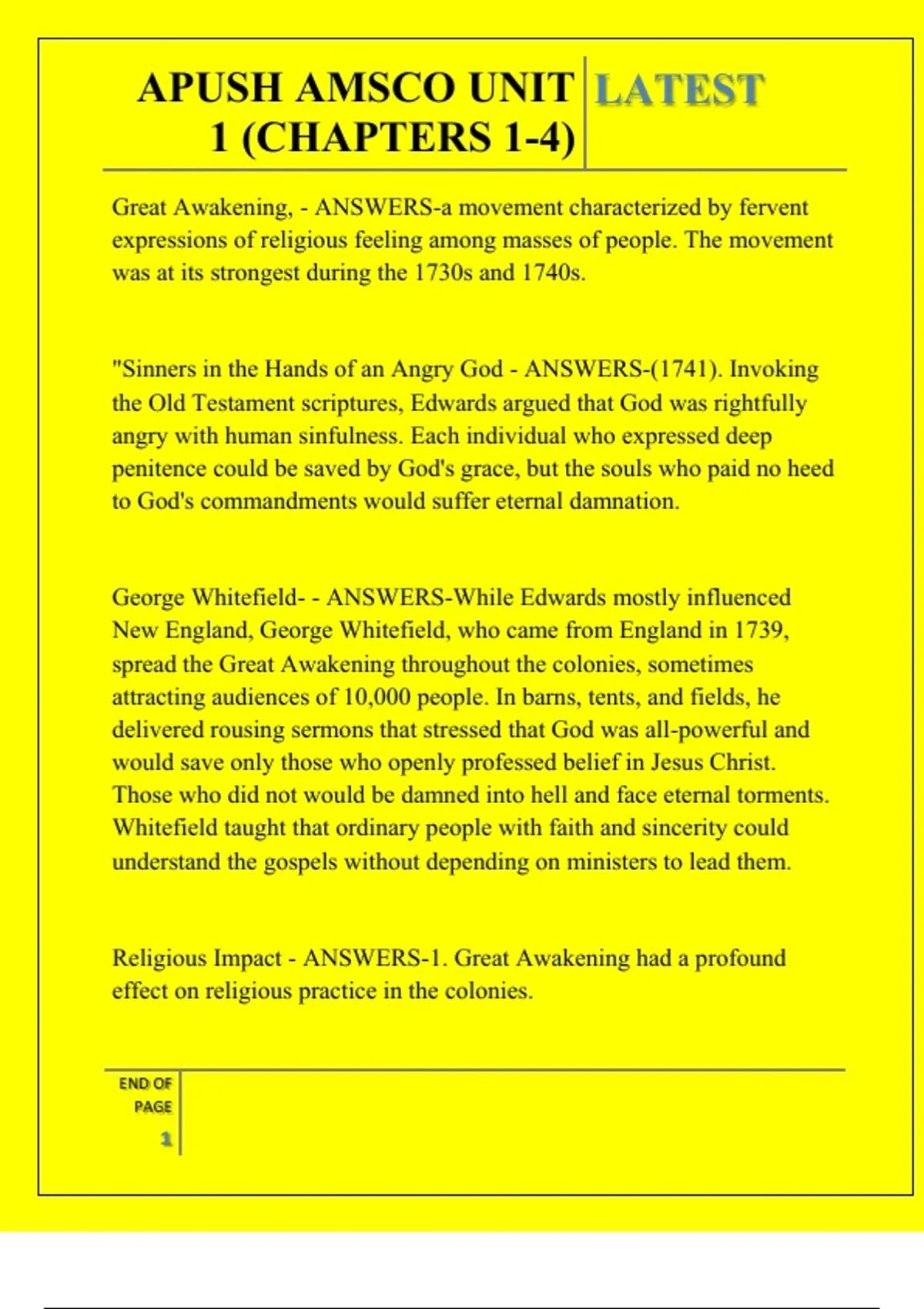 Religious Impact - ANSWERS-1. Great Awakening had a profound