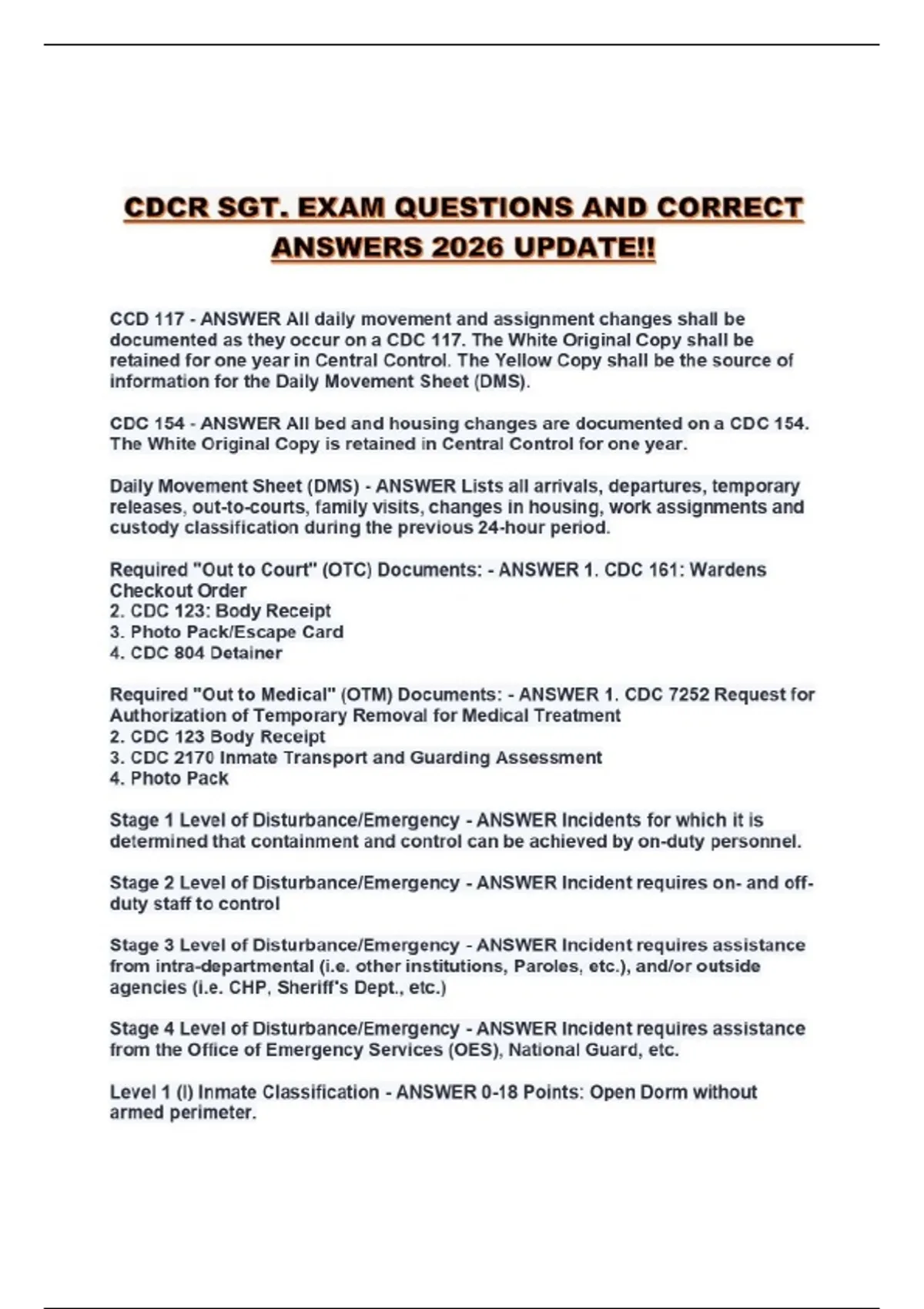 CDCR SGT. EXAM QUESTIONS AND CORRECT ANSWERS 2026 UPDATE!!...