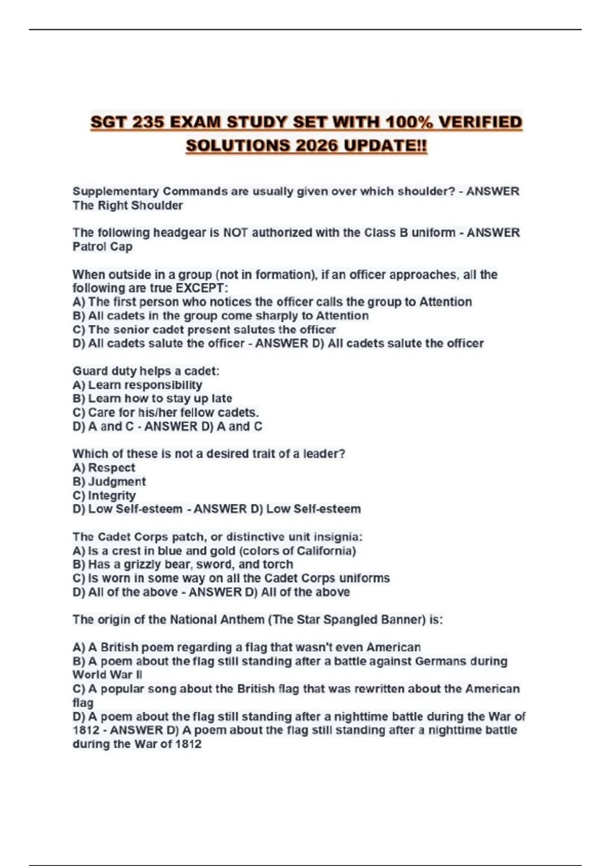 SGT 235 EXAM STUDY SET WITH 100% VERIFIED SOLUTIONS 2026 UPDATE!!...
