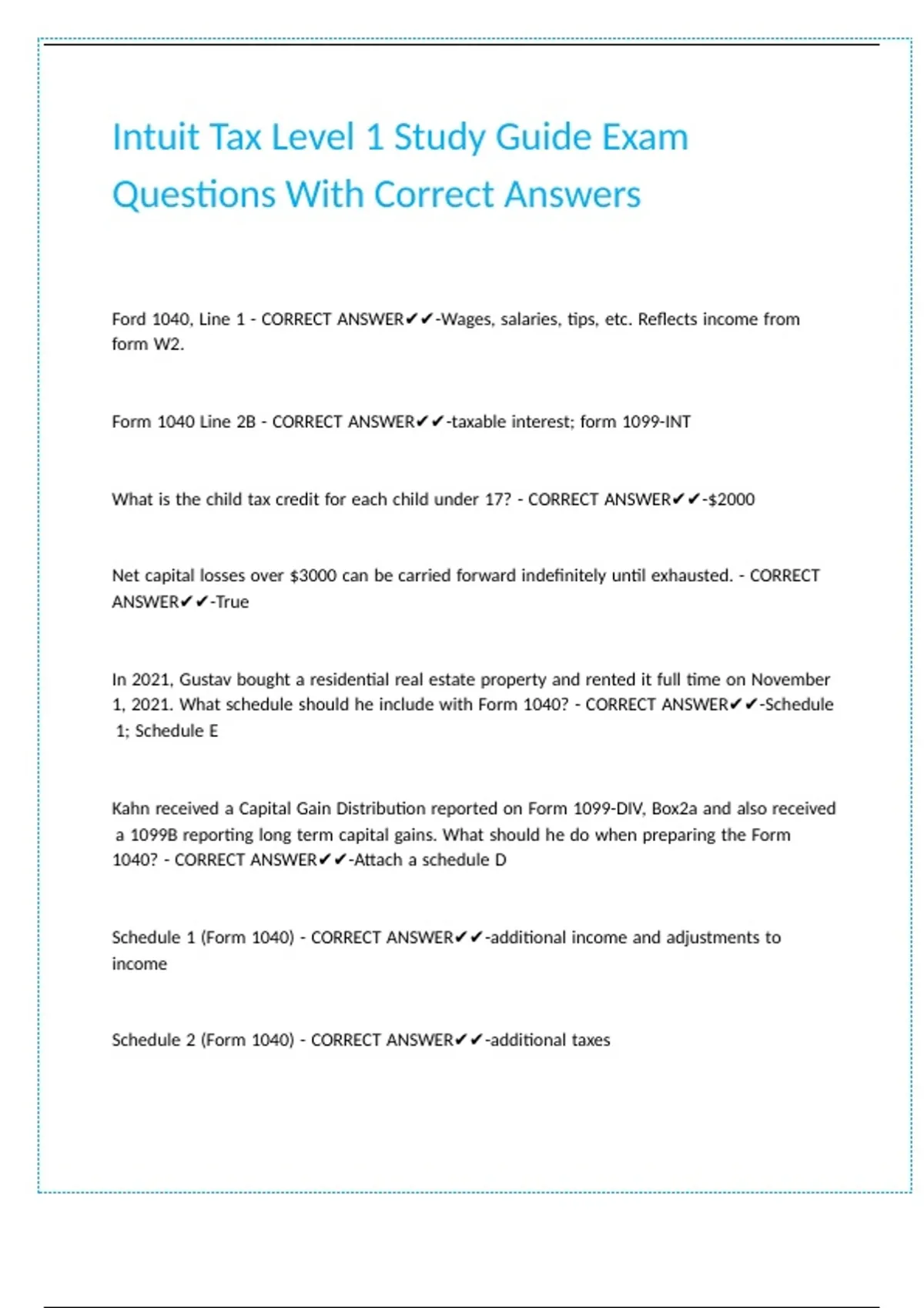Intuit Tax Level 1 Study Guide Exam
