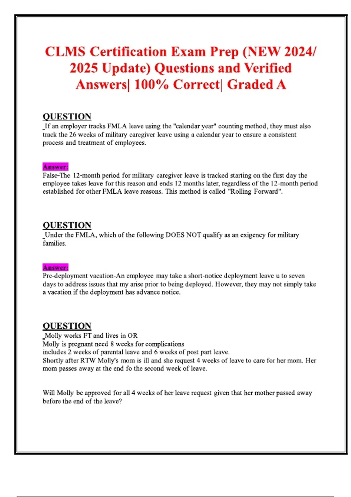 CLMS Certification Exam Prep (NEW Update) Questions and Verified Answers, 100- Correct,