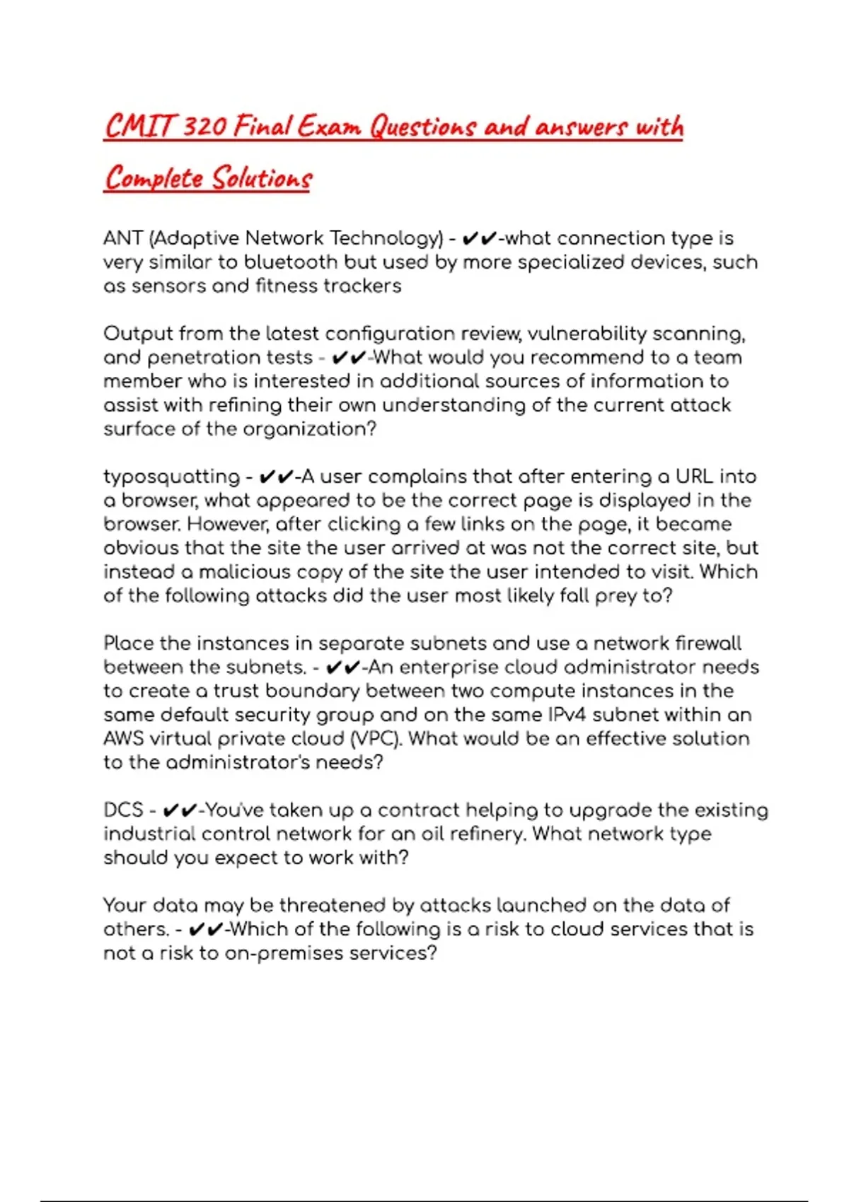 CMIT 320 Final Exam Questions and answers with Complete Solutions