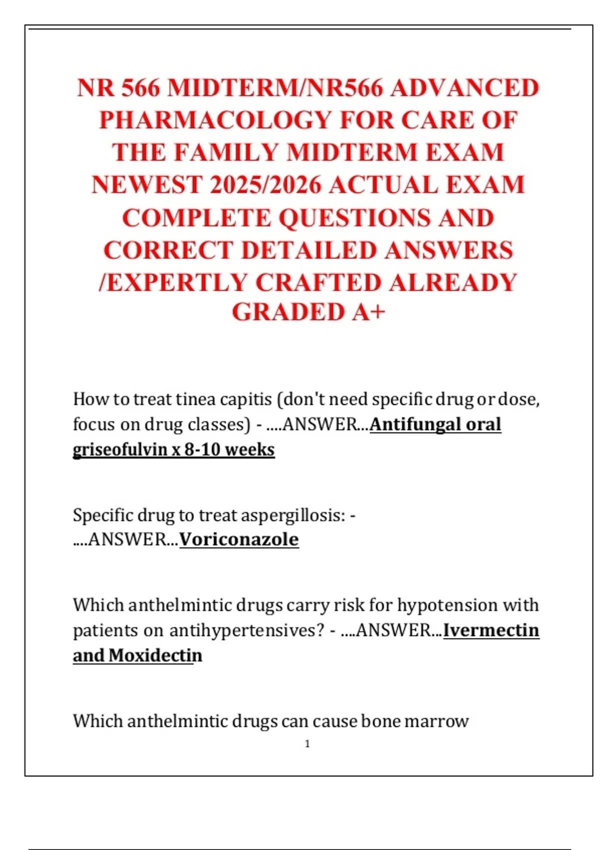 focus on drug classes) - ....ANSWER...Antifungal oral