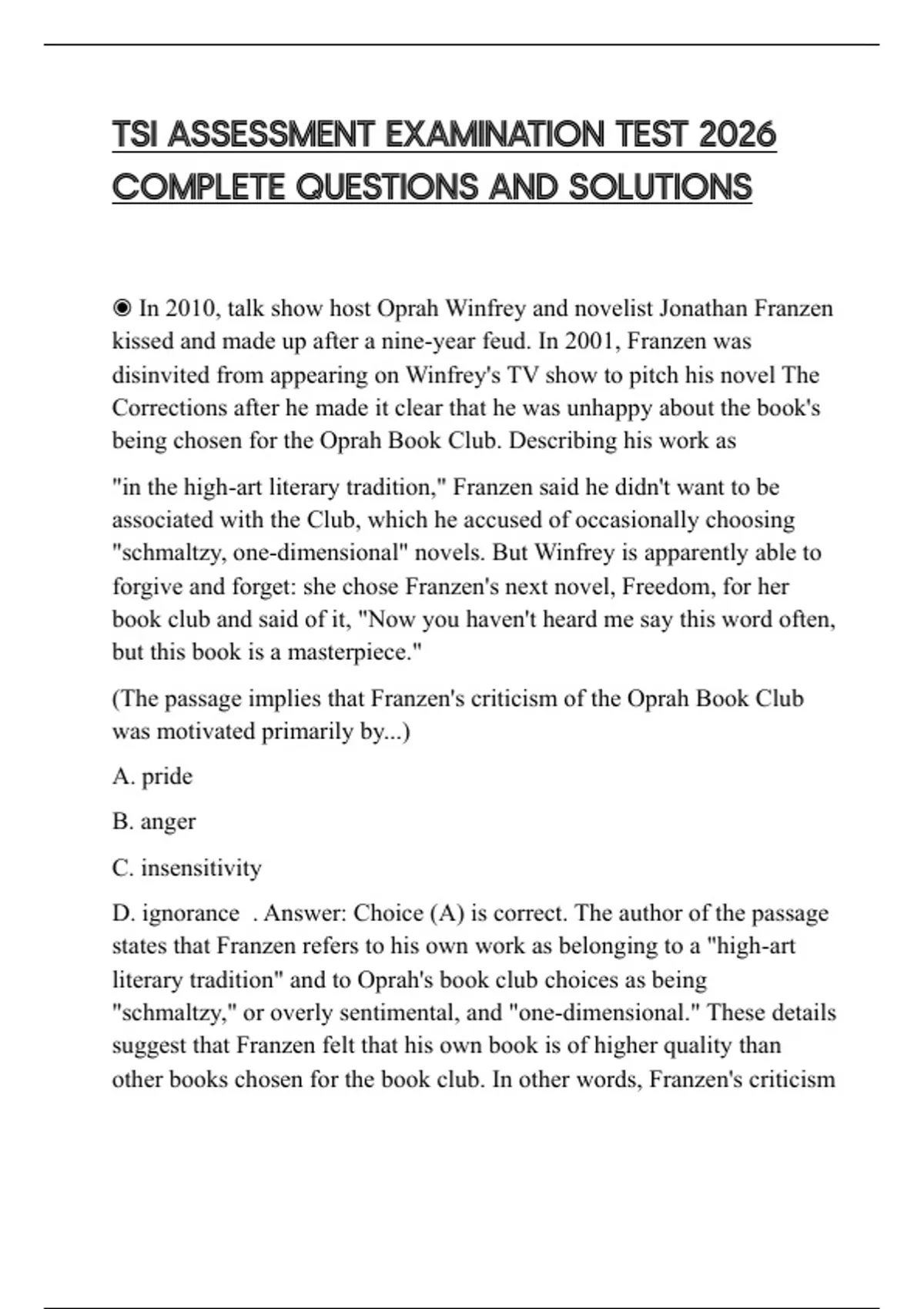 (The passage implies that Franzen's criticism of the Oprah Book Club