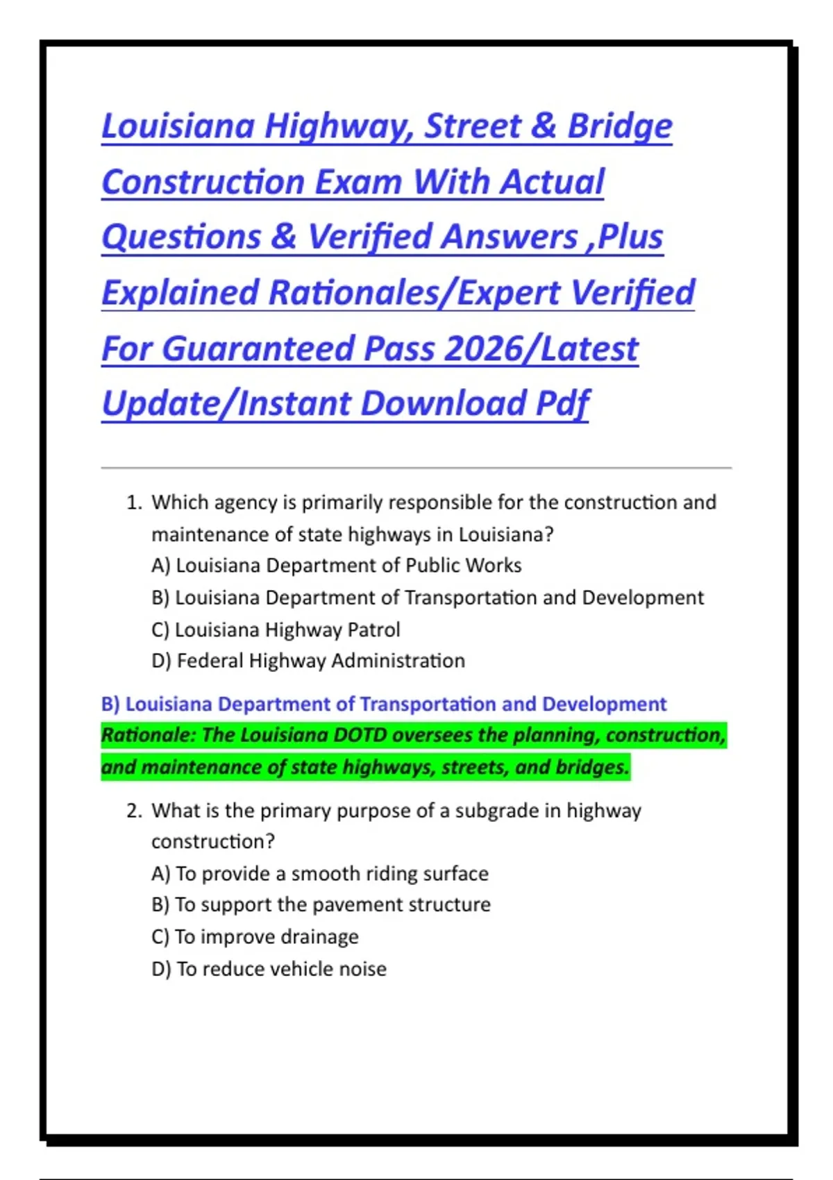 Rationale: The Louisiana DOTD oversees the planning, construction,