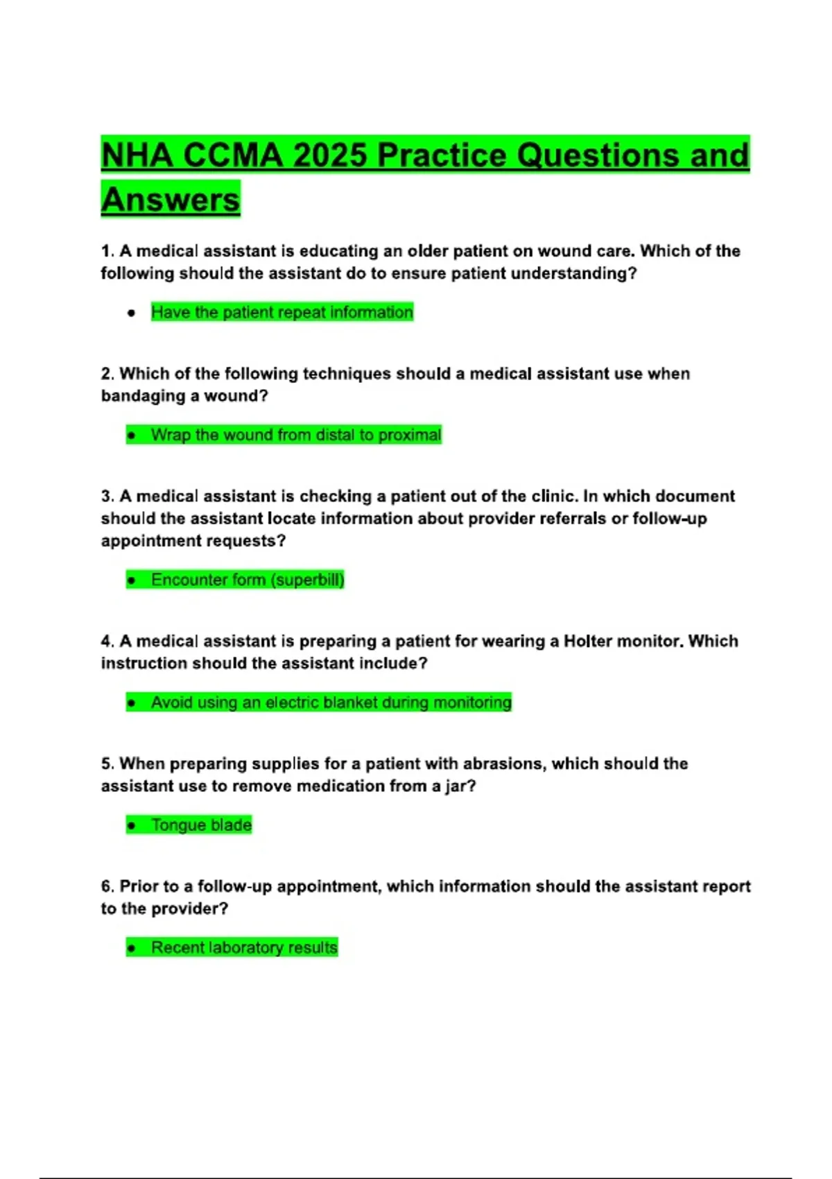 This guide provides a comprehensive collection of practice questions and answers for the 2025 NHA CCMA exam. Covering key clinical skills, administrative procedures, and patient-care concepts, it is designed to help aspiring Certified Clinical Medical Assistants review high-yield topics, reinforce understanding, and prepare effectively for certification success. The content is organized to support focused and efficient study sessions aligned with current exam standards.
