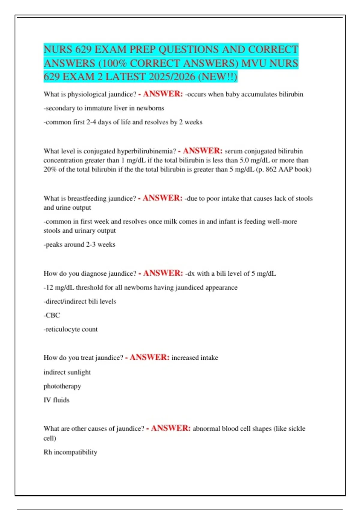 ANSWERS (100% CORRECT ANSWERS) MVU NURS