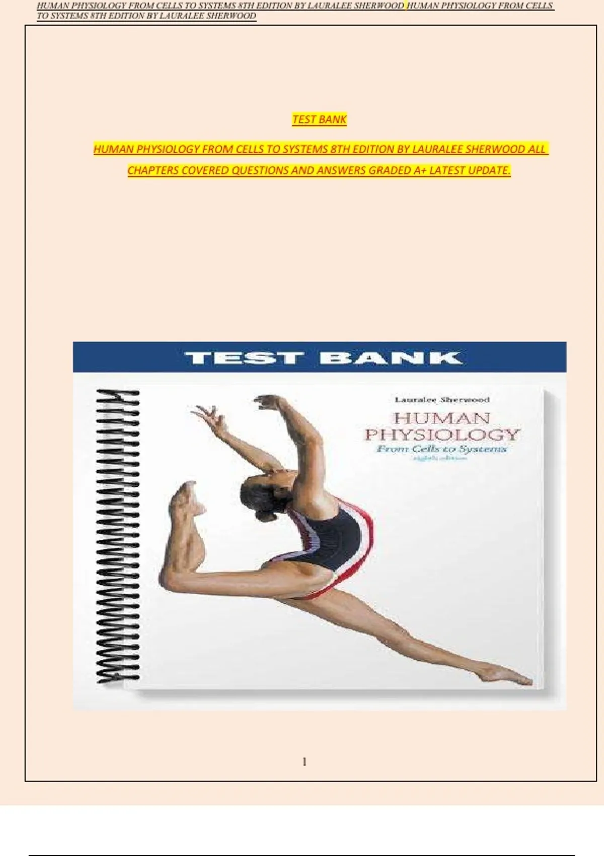 This document provides the complete test bank for Human Physiology: From Cells to Systems, 8th Edition by Lauralee Sherwood, covering all chapters in the textbook. It includes fully solved, A+ graded questions and answers designed to support thorough exam preparation and mastery of core physiological concepts. The content reflects the latest updates and aligns with common assessments used in physiology courses.