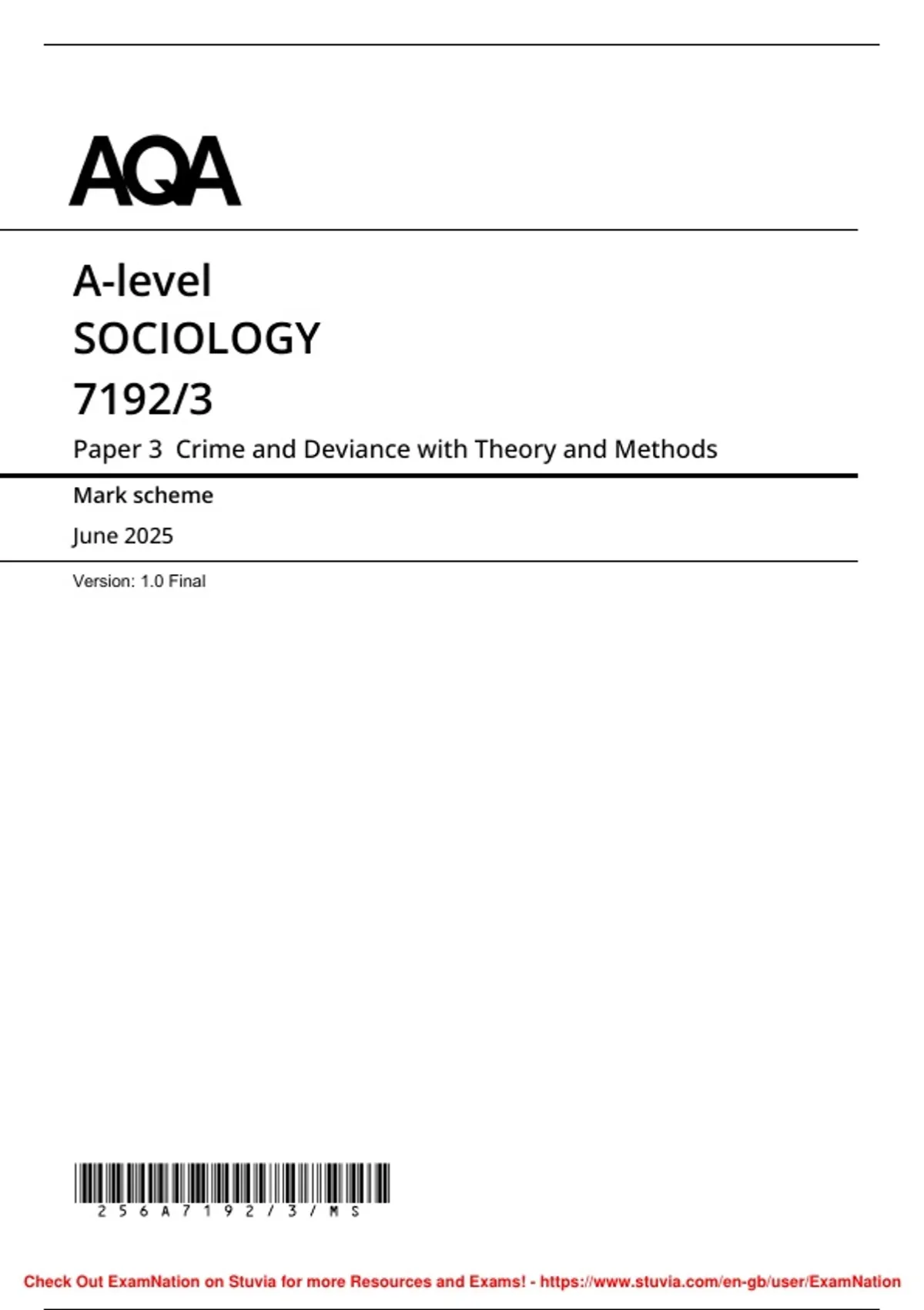 , MARK SCHEME – A-LEVEL SOCIOLOGY – 7192/3 – JUNE 2025