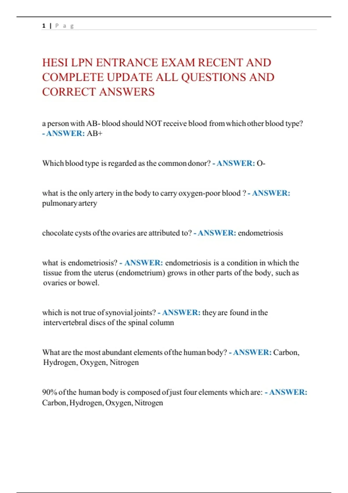 HESI LPN ENTRANCE EXAM RECENT AND COMPLETE UPDATE ALL QUESTIONS AND CORRECT ANSWERS