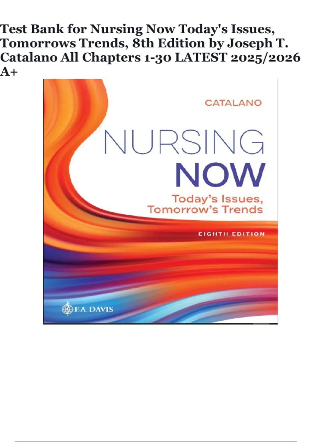 Test Bank for Nursing Now Today's Issues, Tomorrows Trends, 8th Edition by Joseph T. Catalano All Chapters 1-30 LATEST