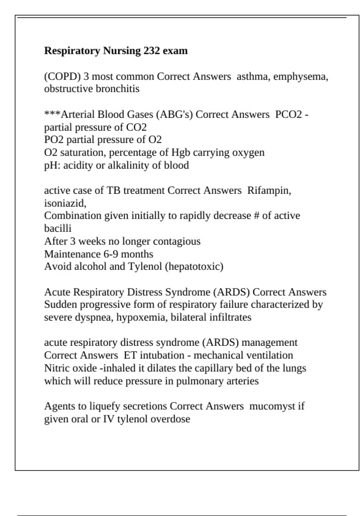 Acute Respiratory Distress Syndrome (ARDS) Correct Answers