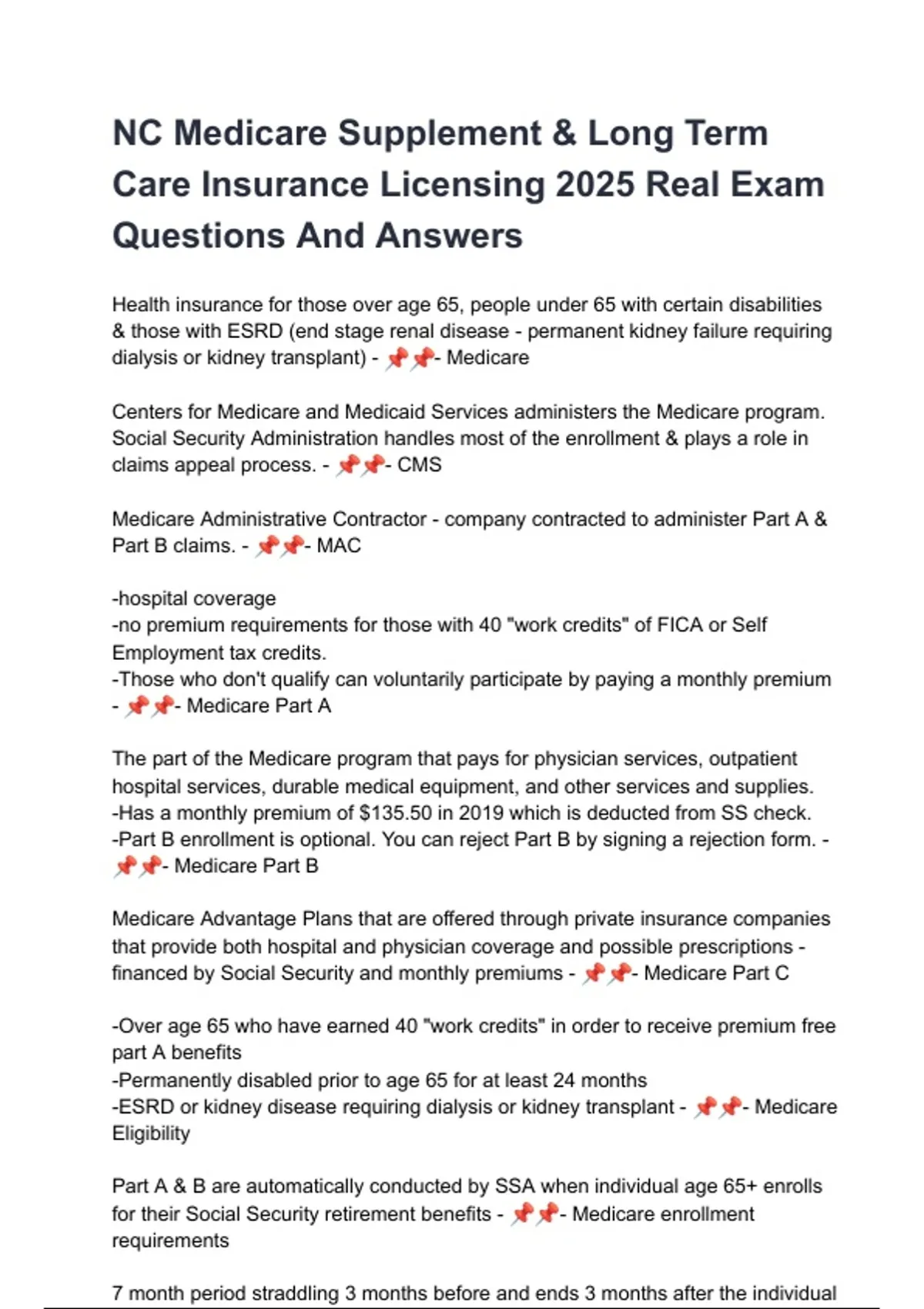 Prepare for North Carolina Medicare Supplement and Long Term Care Insurance licensing exams with this complete study guide. Includes key concepts, practice questions, and expert tips to ensure you pass with confidence.