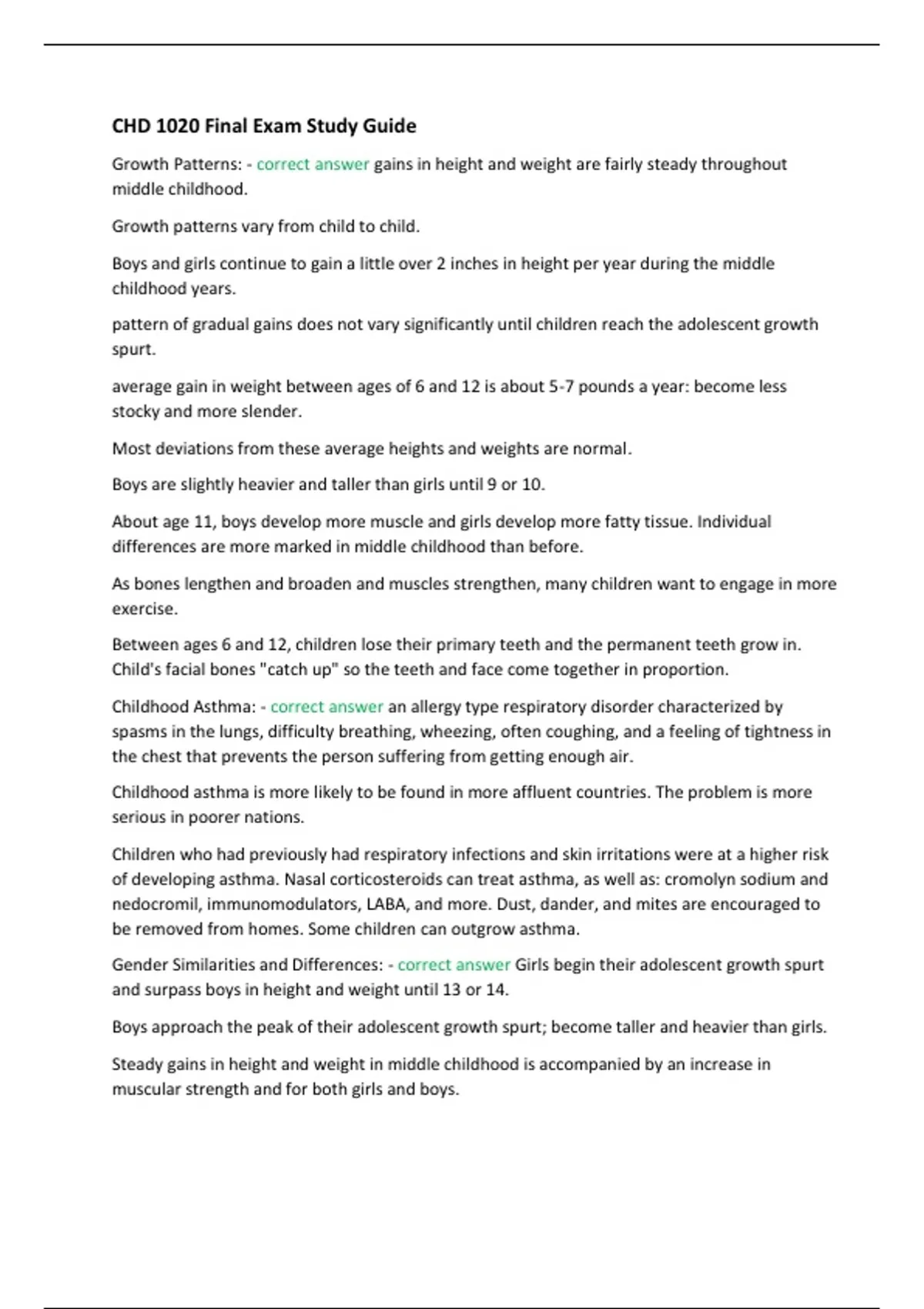 CHD 1020 Final Exam Study Guide