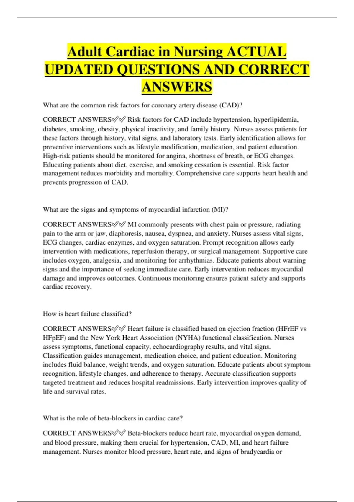 CORRECT ANSWERS✅✅ Beta-blockers reduce heart rate, myocardial oxygen demand,