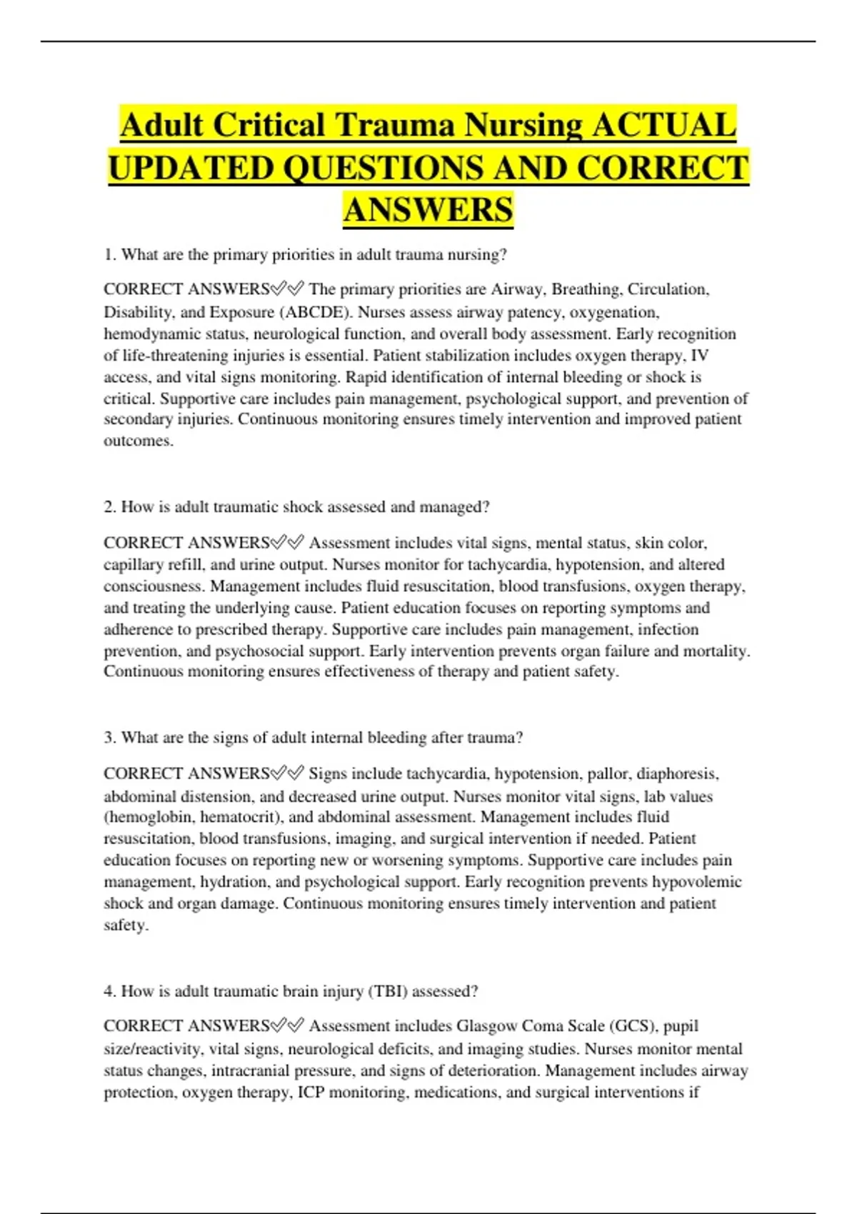 CORRECT ANSWERS✅✅ Management includes ABCDE assessment, stabilization of