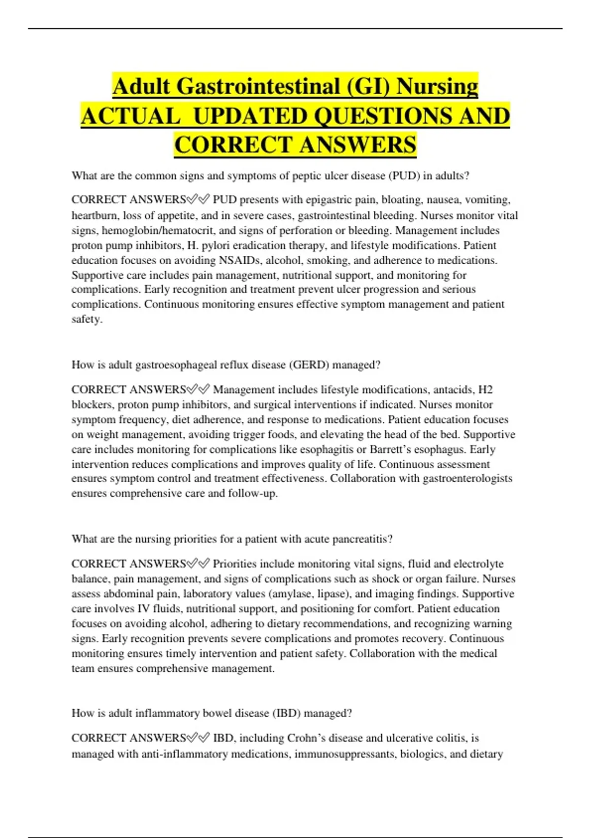 CORRECT ANSWERS✅✅ IBD, including Crohn’s disease and ulcerative colitis, is