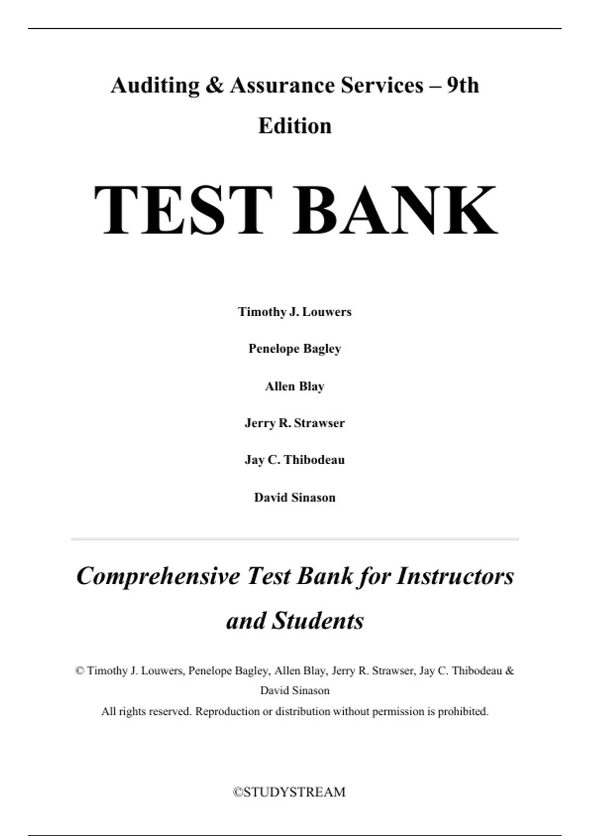, Test Bank for Auditing & Assurance Services 9th Edition by Timothy