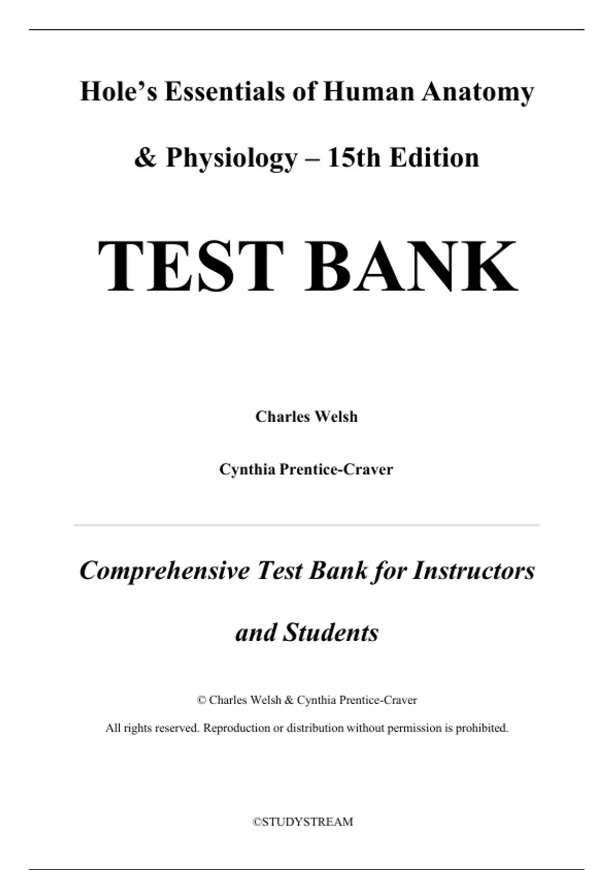 , Test Bank Hole's Essentials of Human Anatomy & Physiology, 15th Edition