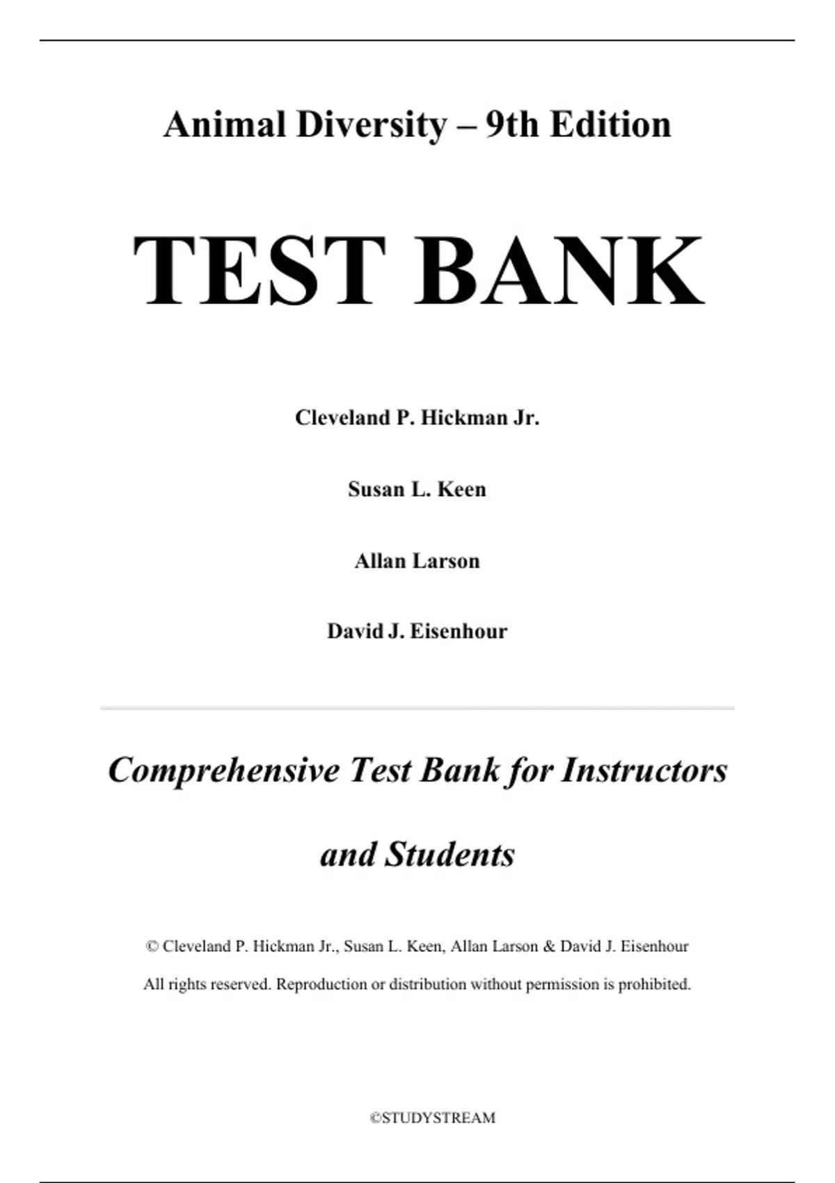 , TEST BANK Animal Diversity 9/E Cleveland Hickman