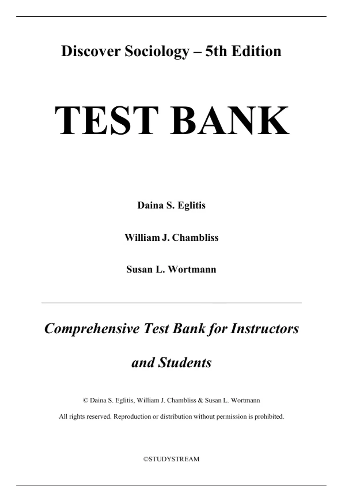 , T E S T B A N K D is c o v e r S o c io lo g y 5 th E d itio n D a in a E g litis