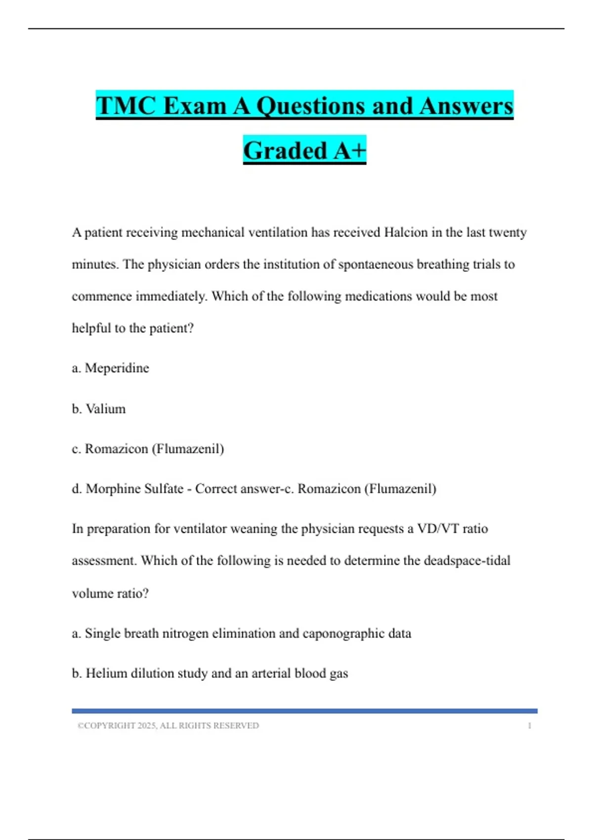 d. Helium dilution study and single breath nitrogen elimination - Correct answer-c.