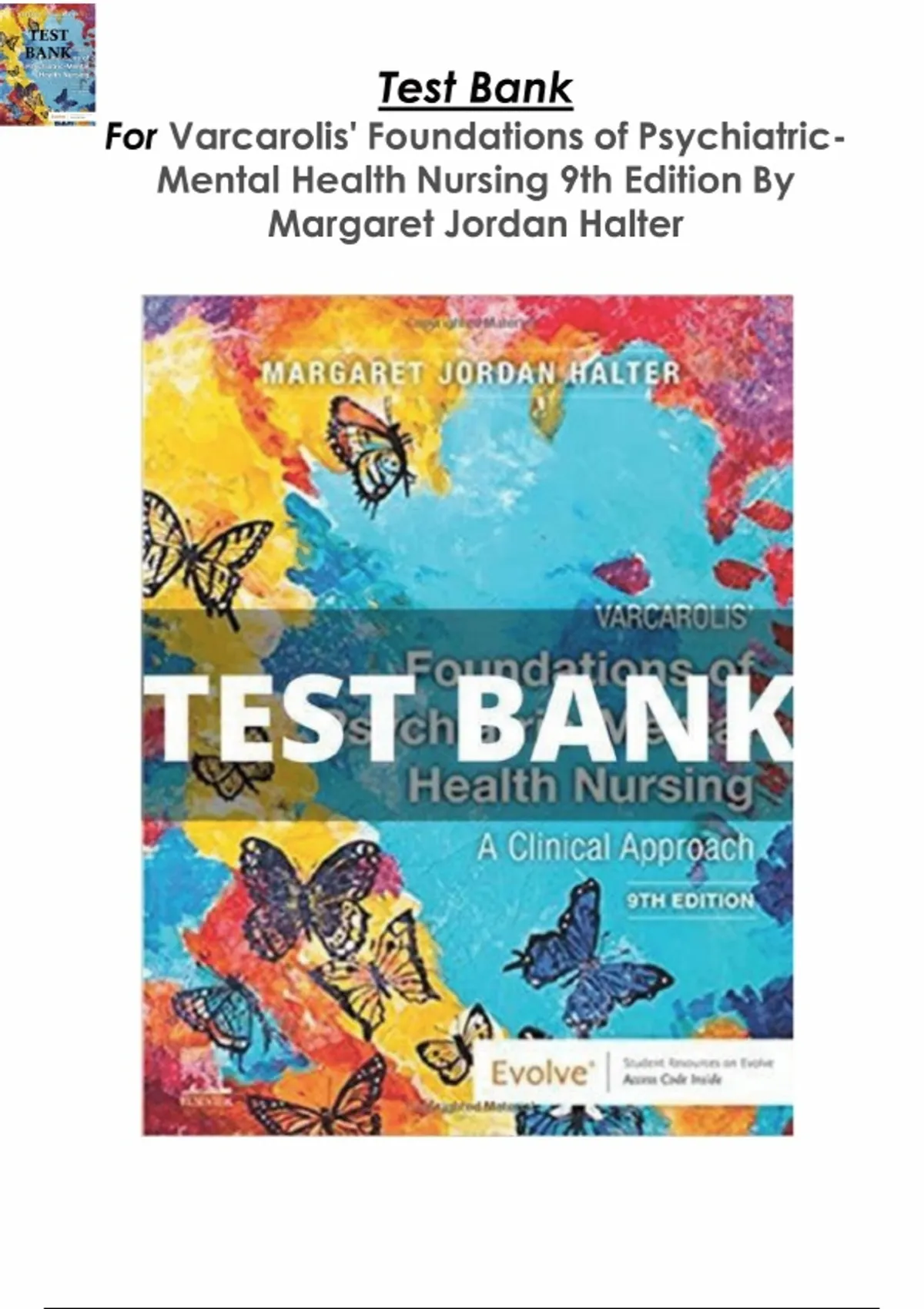 TEST BANK For Varcarolis' Foundations of Psychiatric-Mental Health Nursing, 9th Edition by Margaret Jordan Halter Chapters 1 - 36 Questions and verified answers with Rationales. | Complete newest version updated.