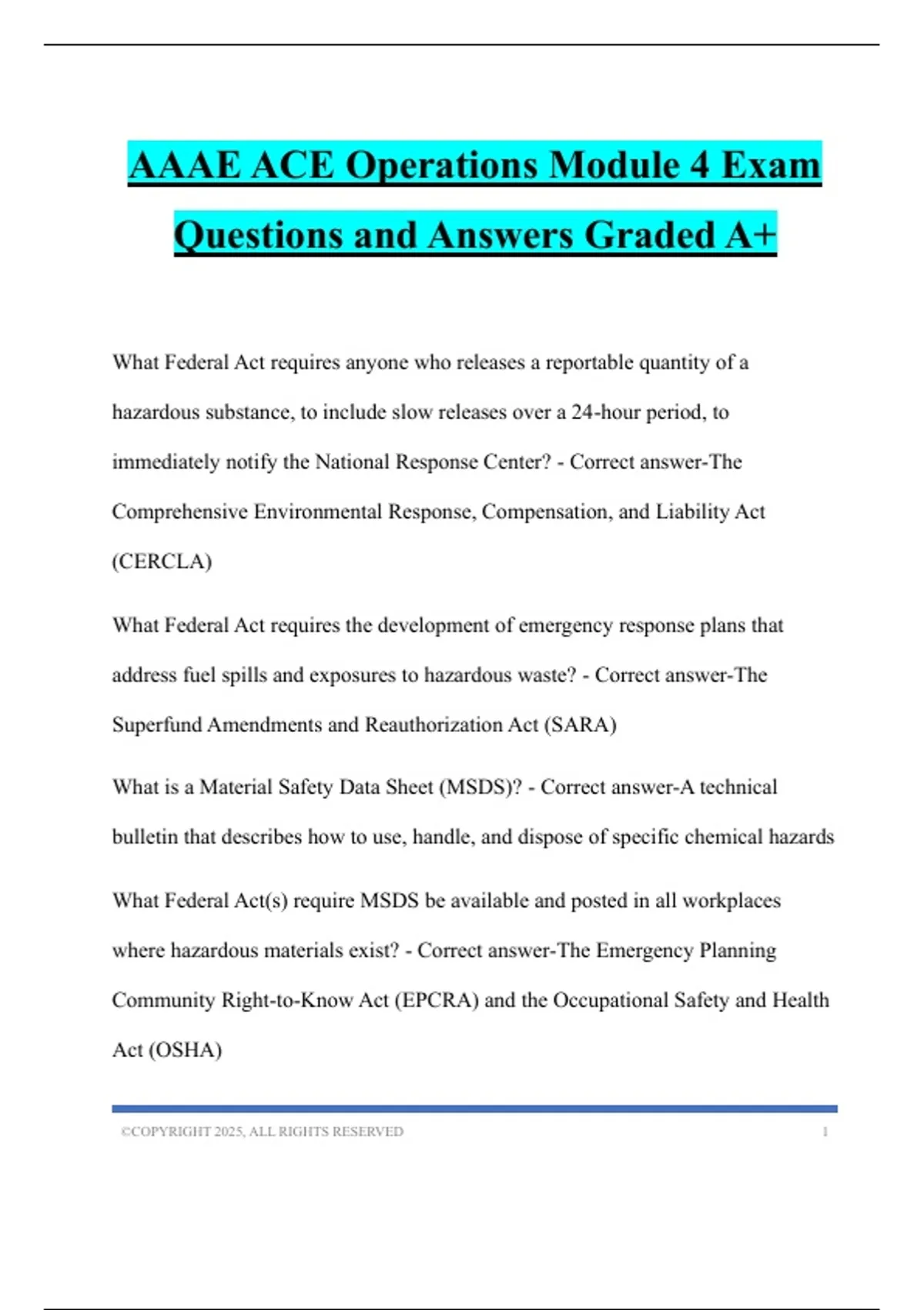 AAAE ACE Operations Module 4 Exam Questions and Answers Graded A+