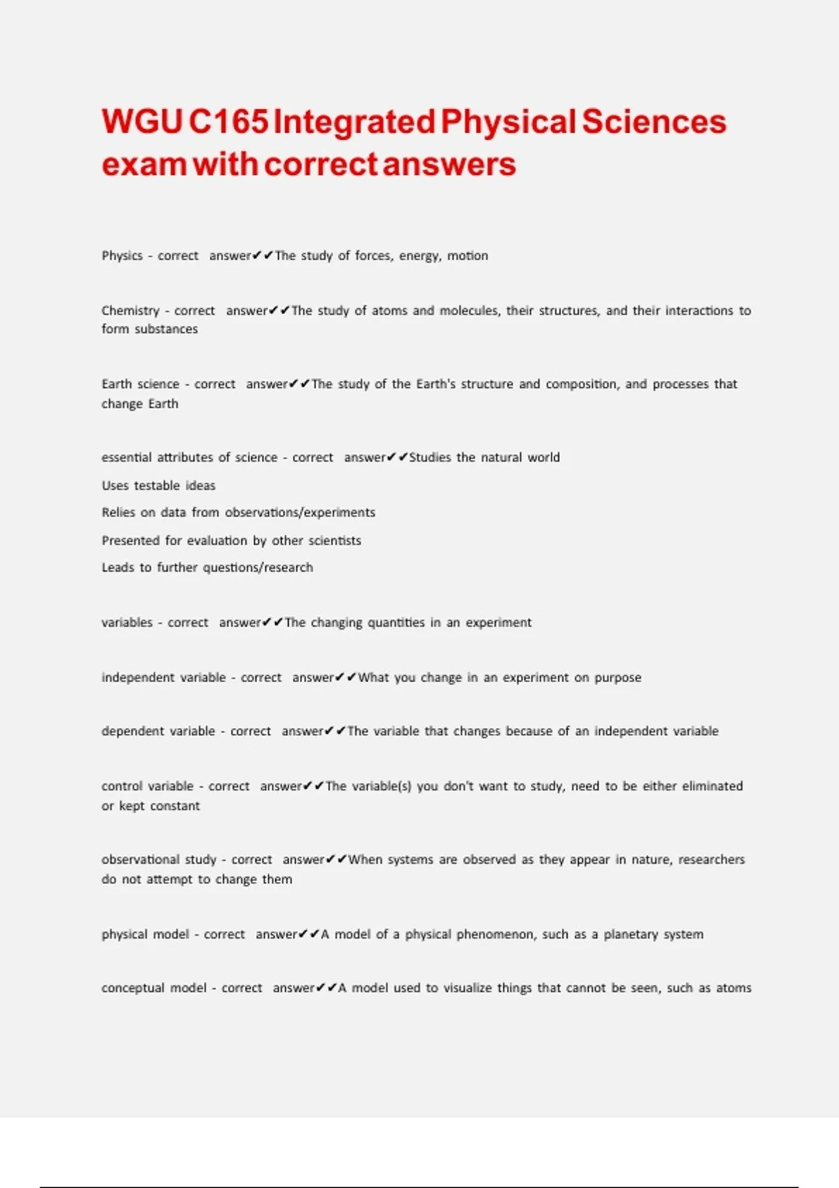 WGU C165 Integrated Physical Sciences exam with correct answers