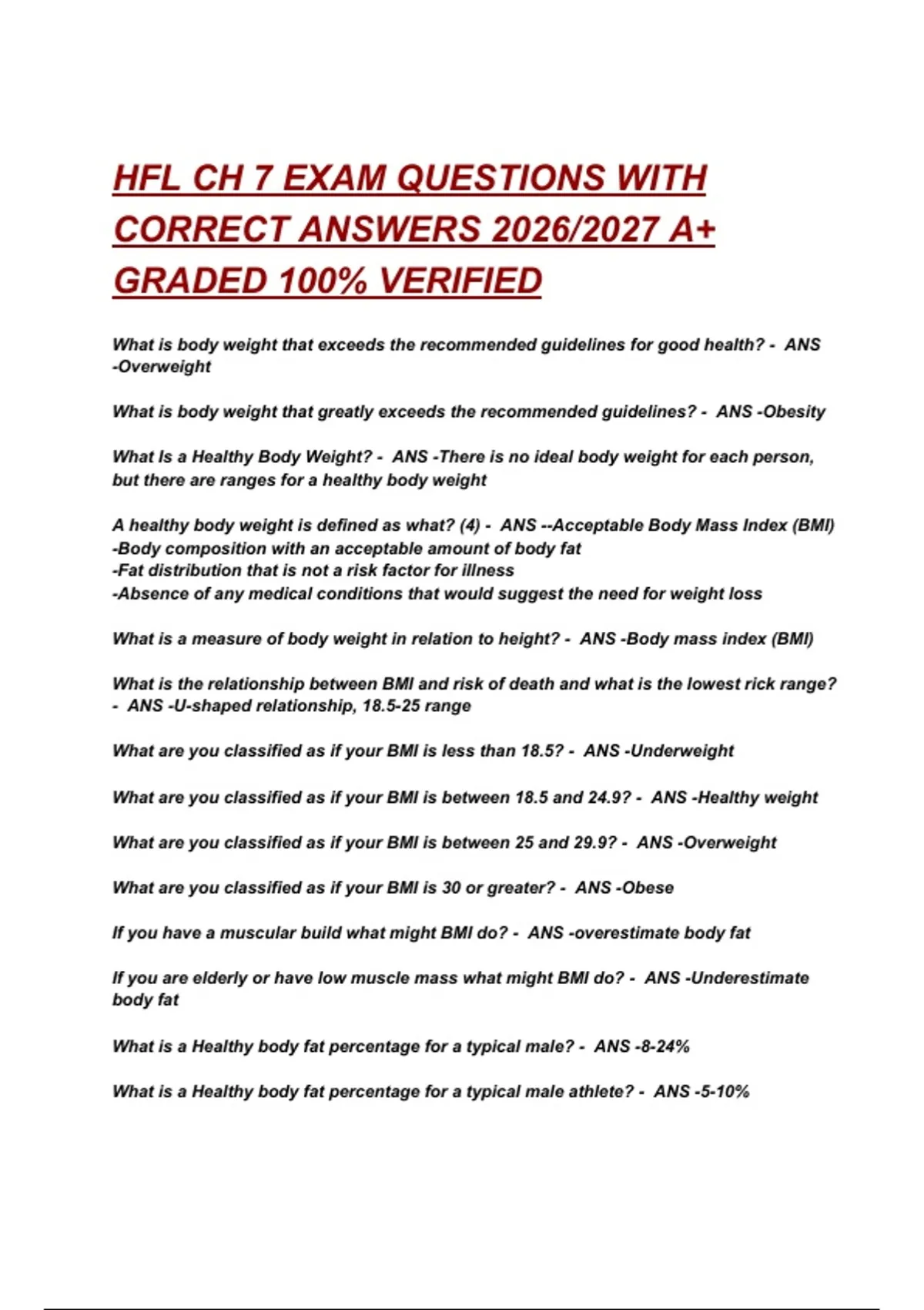 What Is a Healthy Body Weight? - ANS -There is no ideal body weight for each person,