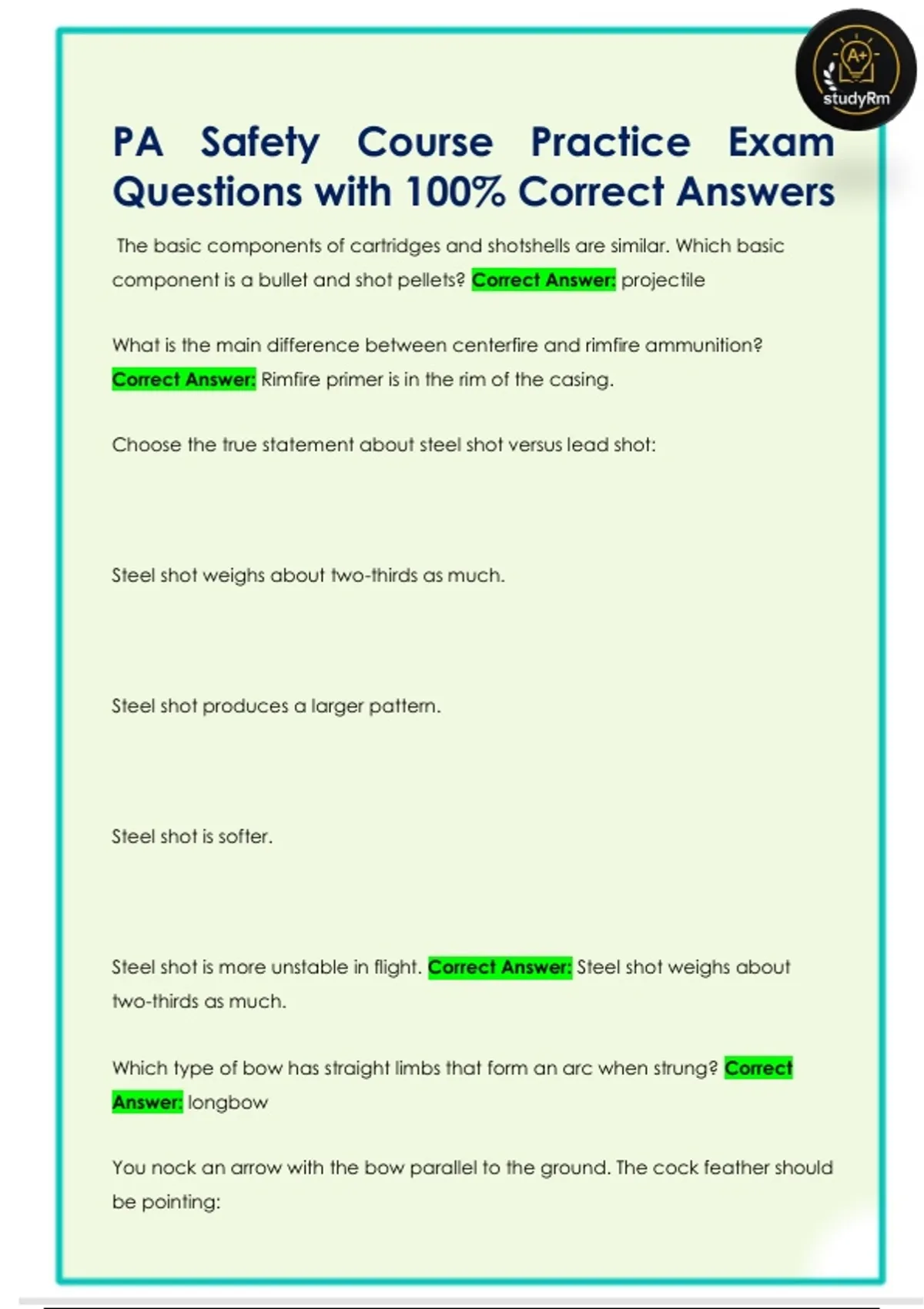 Questions with 100% Correct Answers