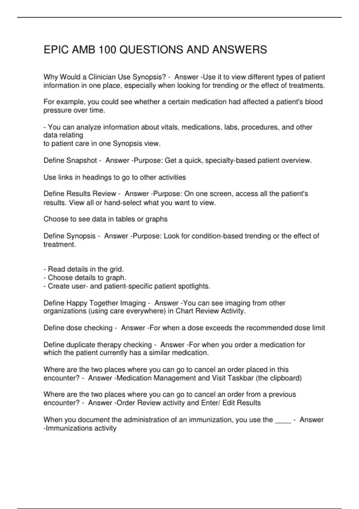 EPIC AMB 100 QUESTIONS AND ANSWERS