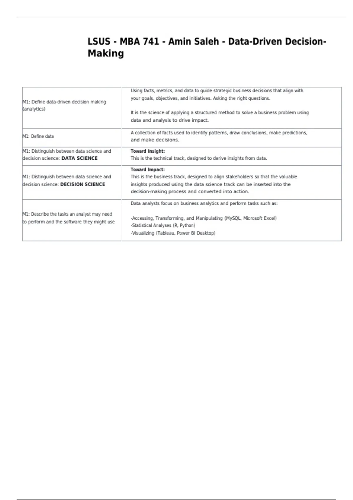 LSUS - MBA 741 - Amin Saleh - Data-Driven Decision-