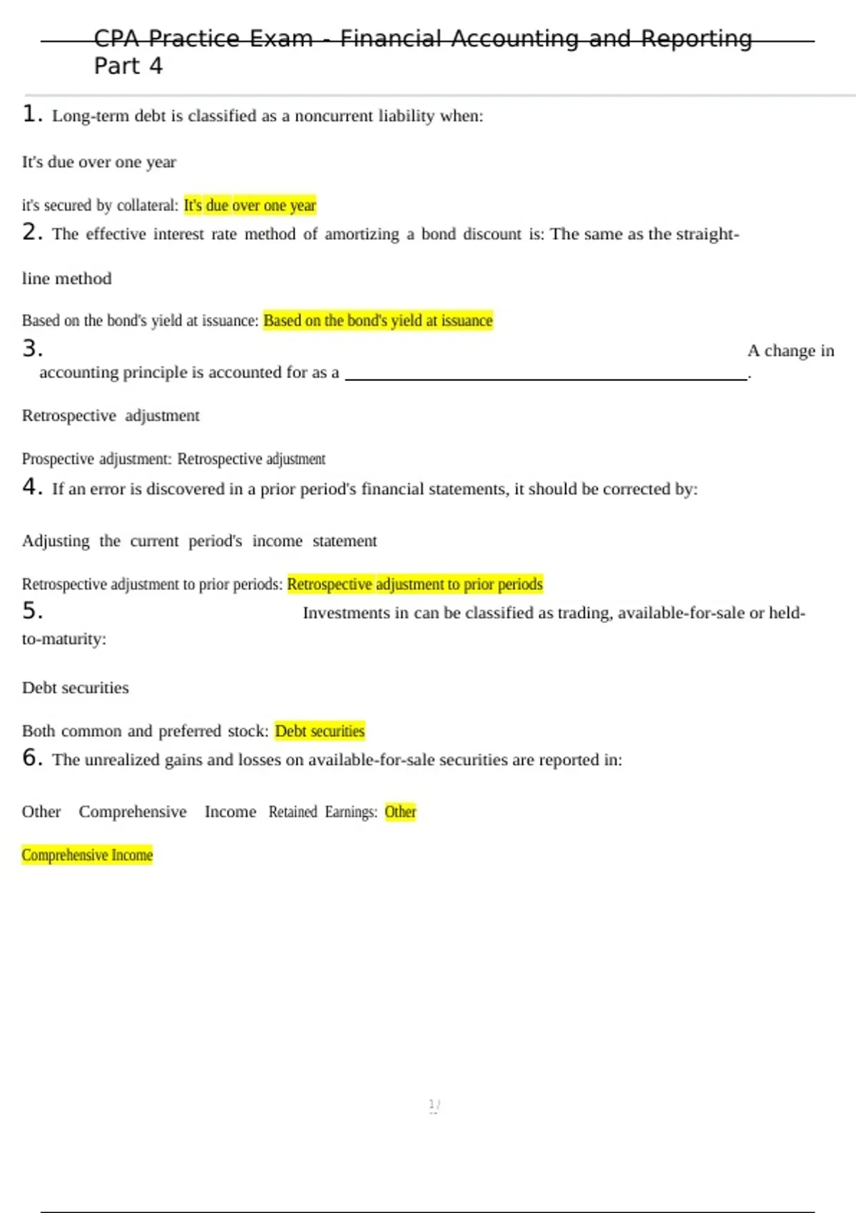 CPA Practice Exam - Financial Accounting and Reporting