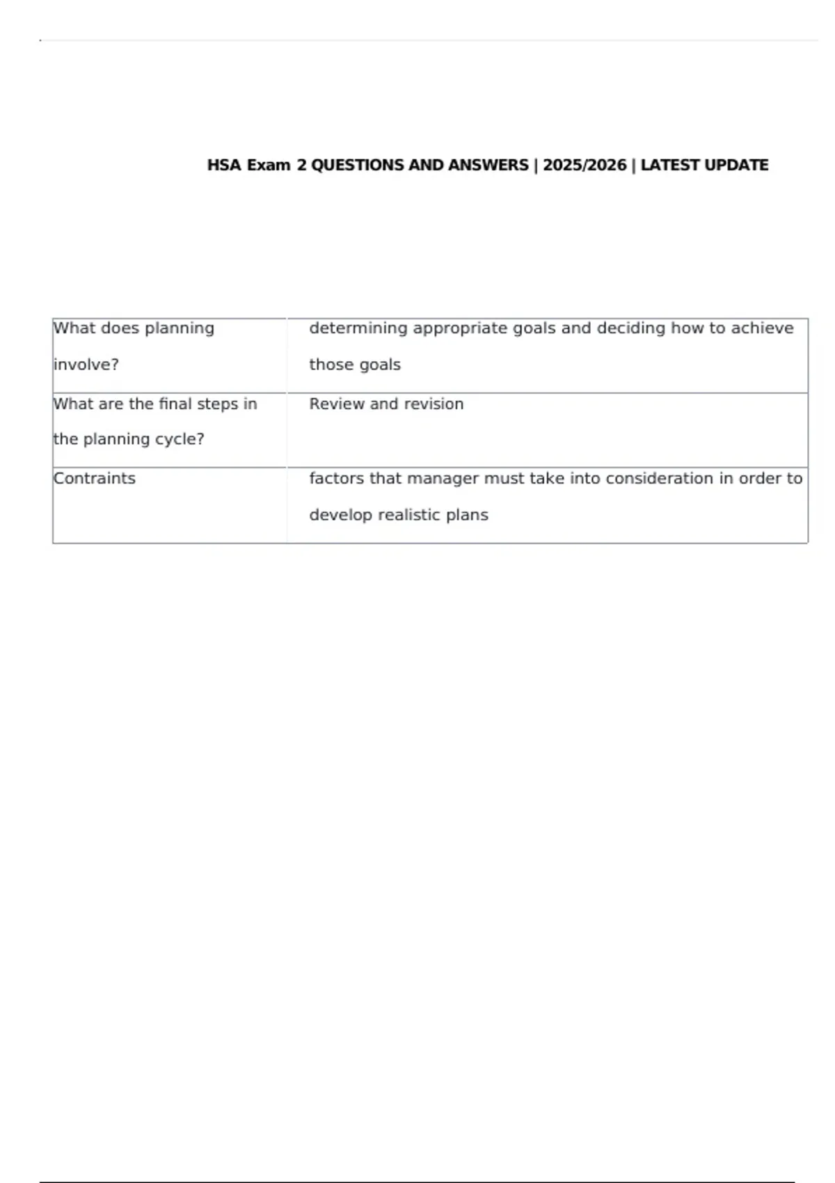 HSA Exam 2 QUESTIONS AND ANSWERS | 2025/2026 | LATEST UPDATE