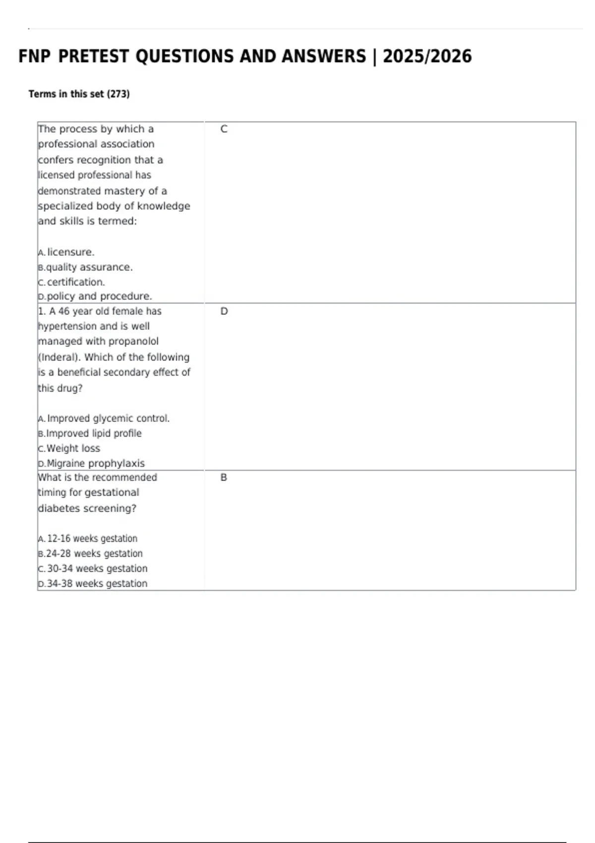 FNP PRETEST QUESTIONS AND ANSWERS | 2025/2026