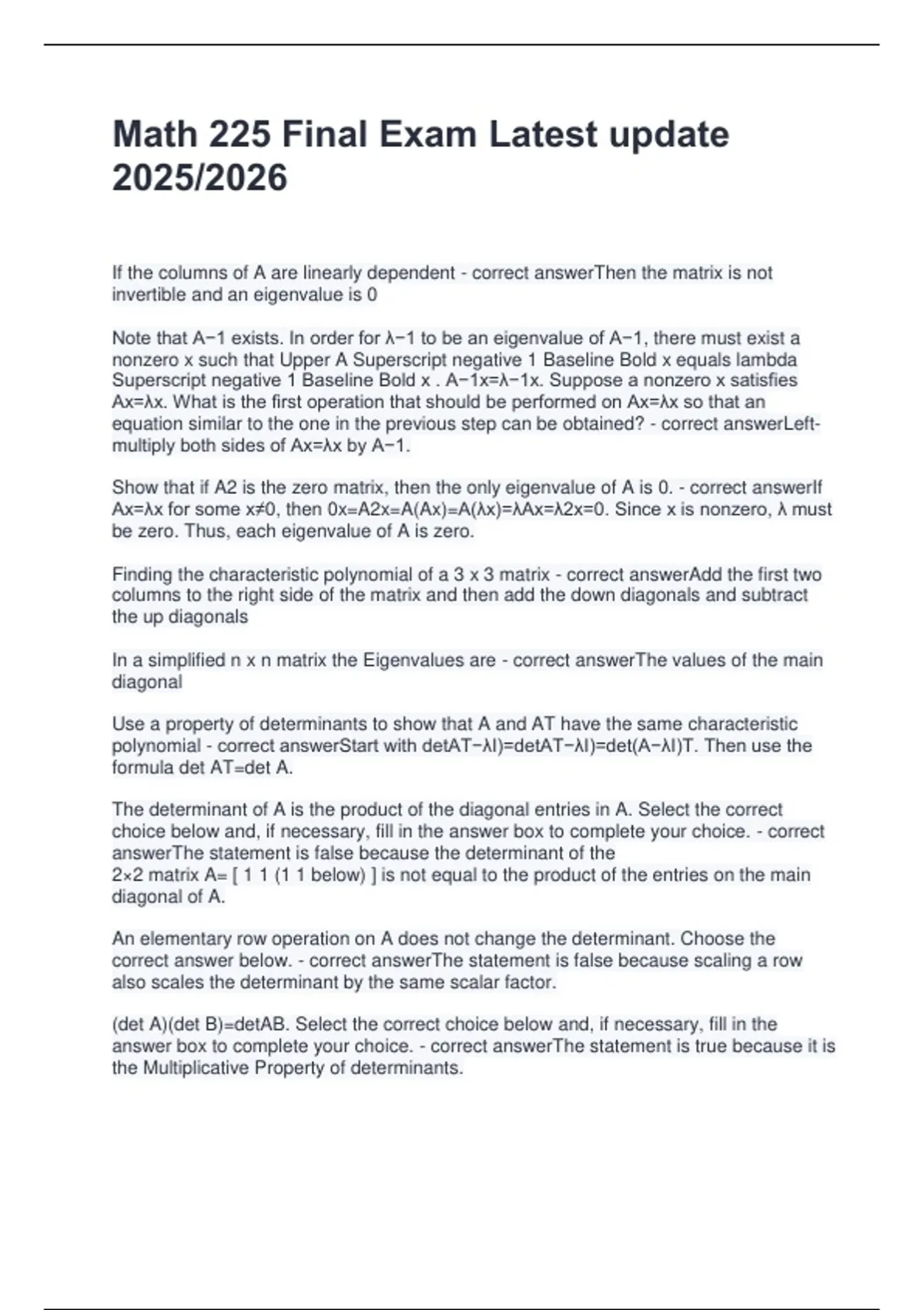 Choose the correct answer below. - correct answerThe statement is false because det