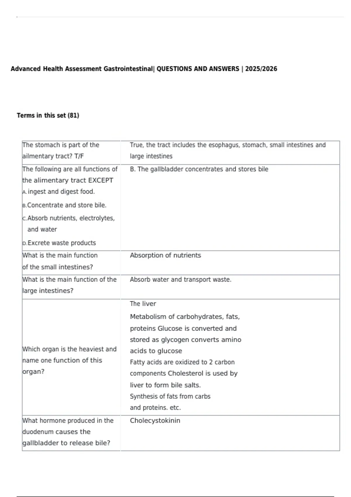 Advanced Health Assessment Gastrointestinal| QUESTIONS AND ANSWERS | 2025/2026