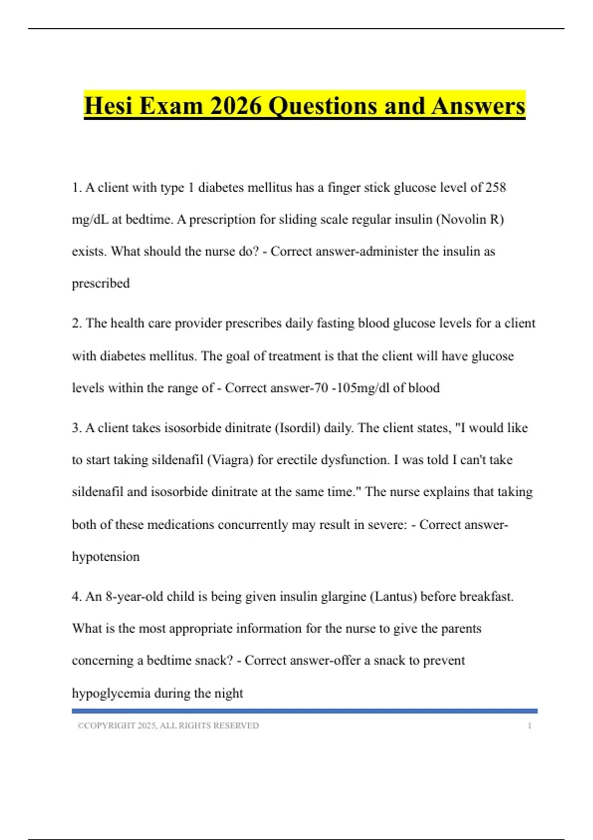 Hesi Exam 2026 Questions and Answers
