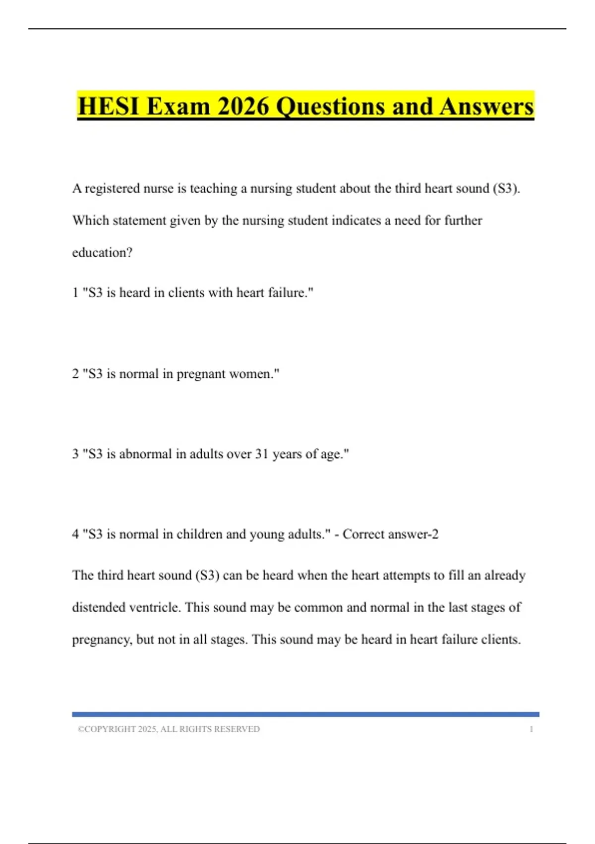 1 "S3 is heard in clients with heart failure."