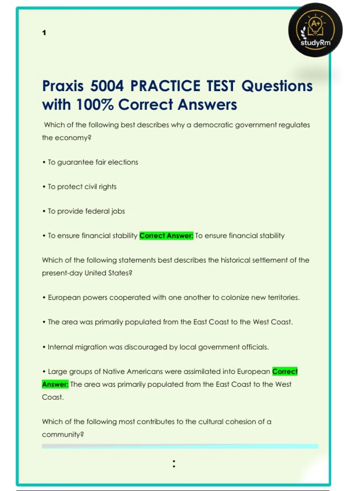 Praxis 5004 PRACTICE TEST Questions
