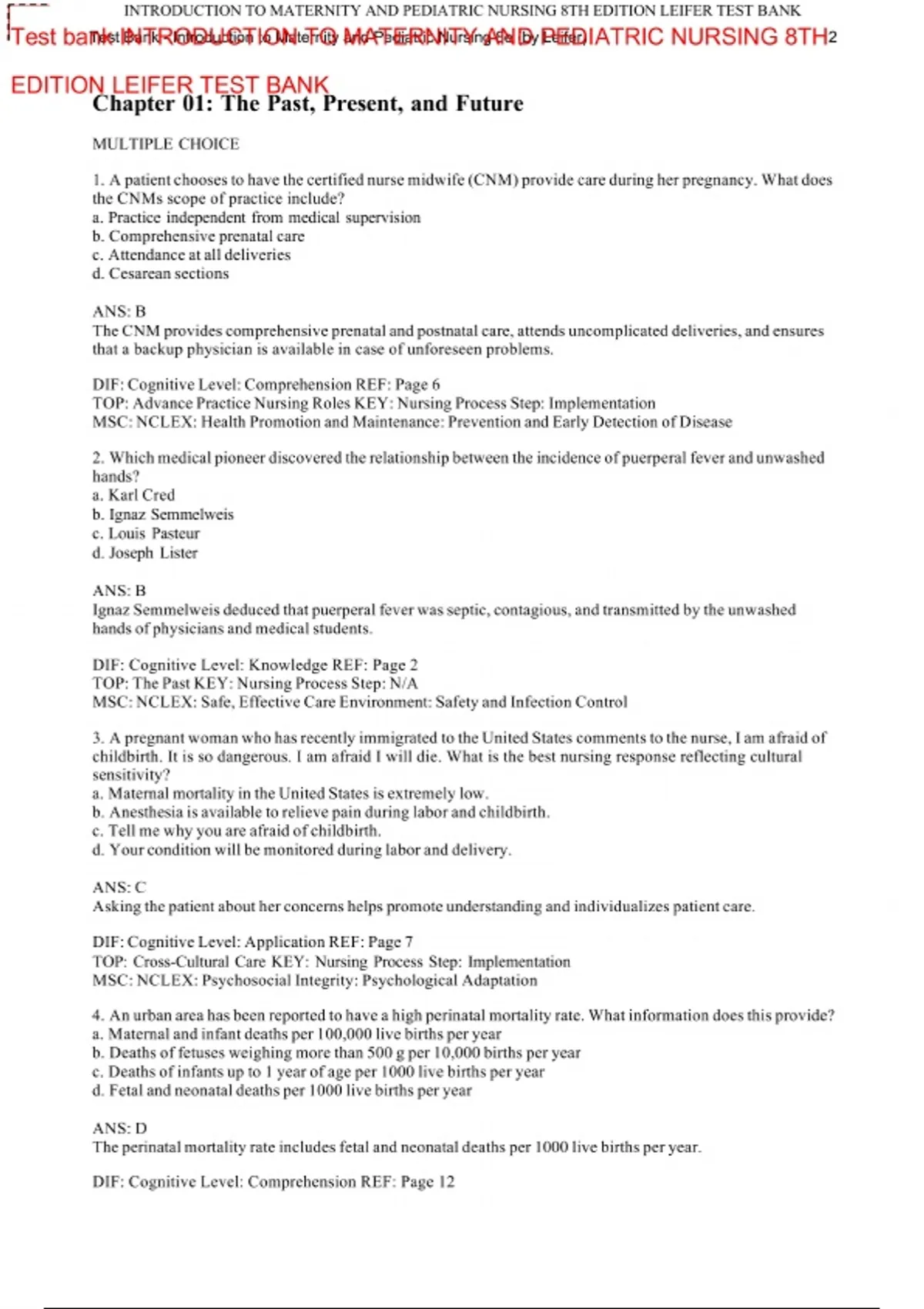 Boost your exam preparation with the Study Resource for Introduction to Maternity and Pediatric Nursing (8th Edition). This comprehensive test bank provides high-quality practice questions and accurate answer guidance to help students build strong foundations in maternal–newborn care, pediatric nursing, family-centered care, and essential clinical decision-making. Designed to enhance understanding and reinforce key concepts, this trusted study tool helps learners prepare confidently for exams and succeed in nursing practice.