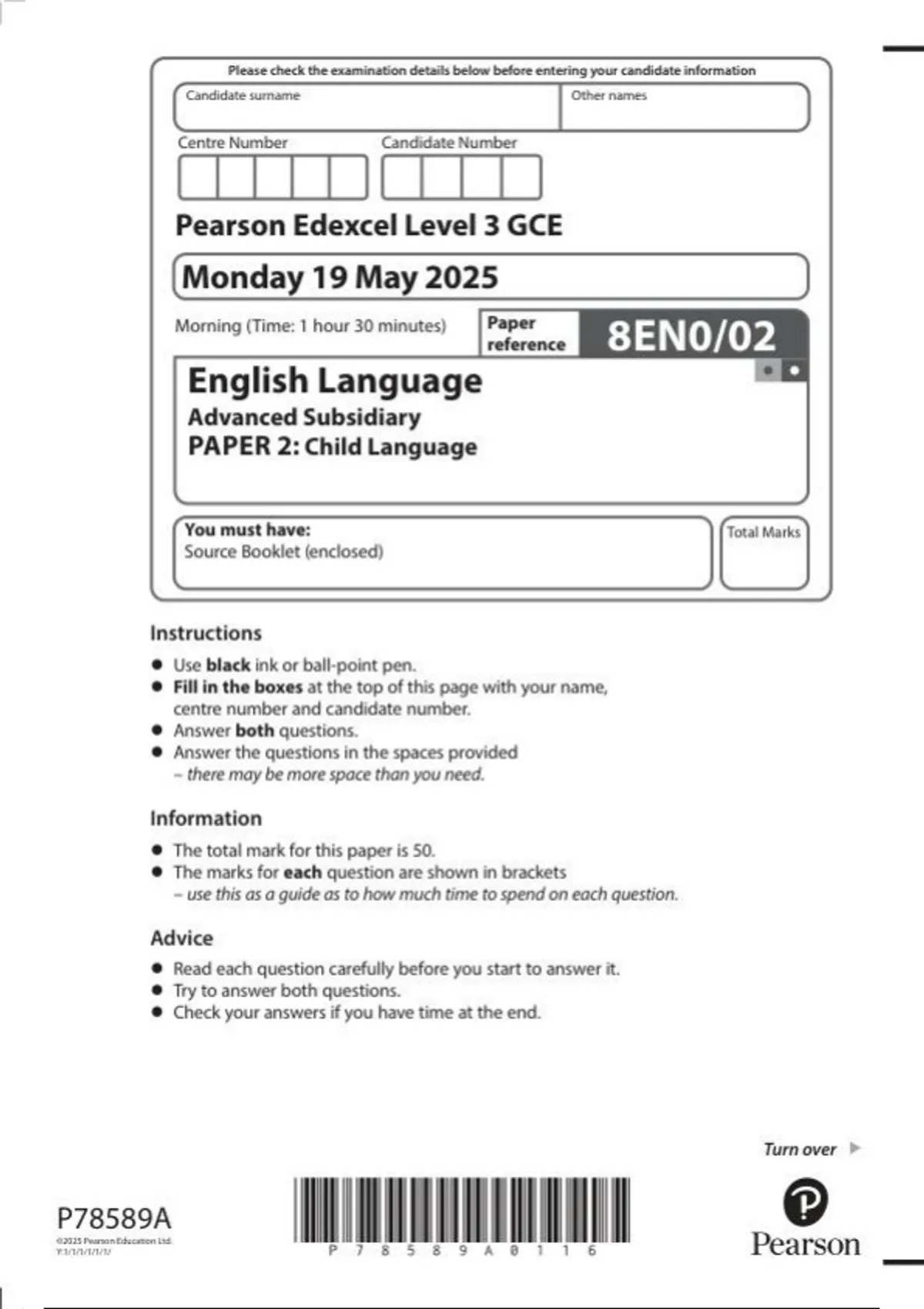 Pearson Edexcel as level English Language |question paper | 2025|8EN0/02
