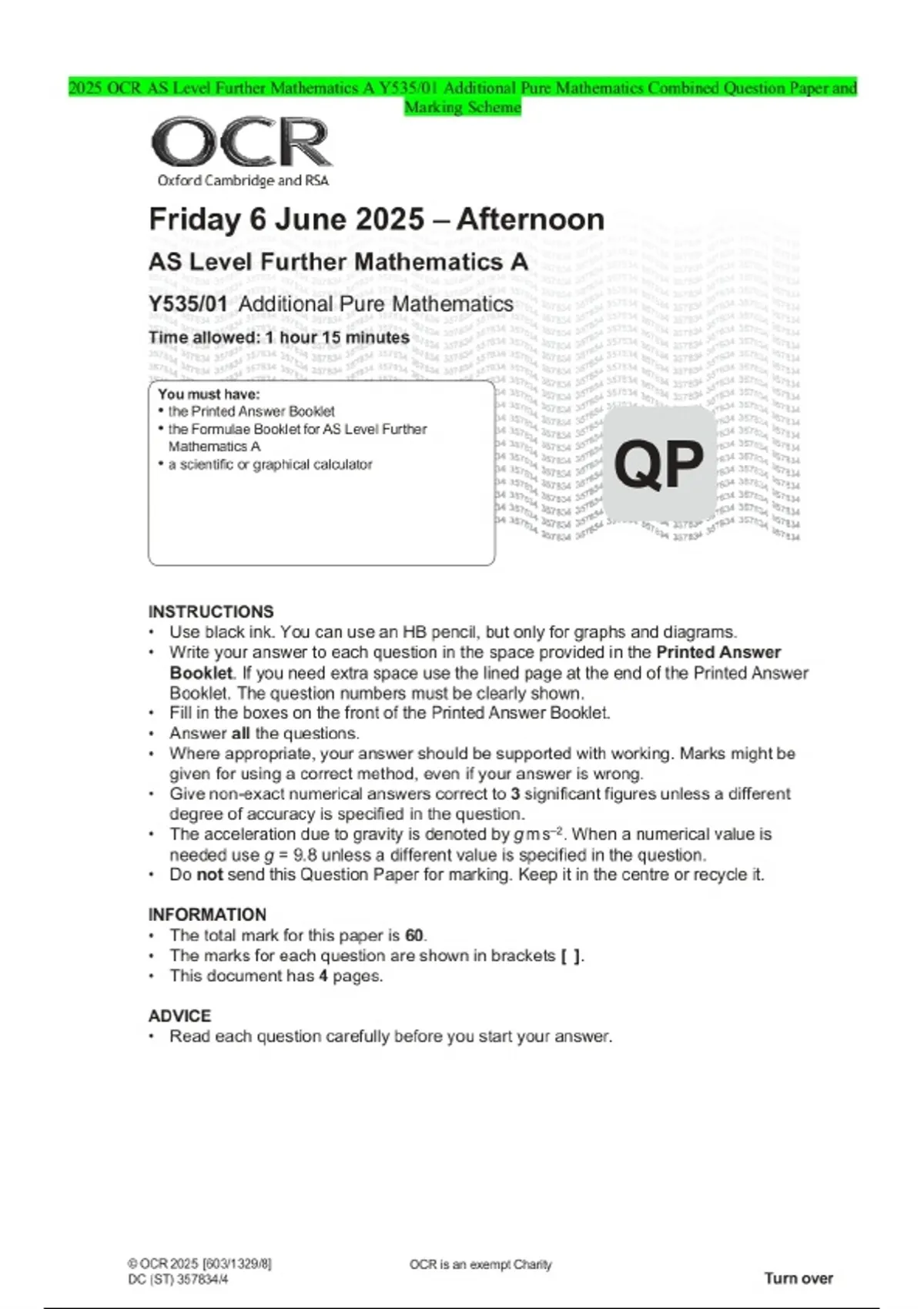2025 ocr as level further mathematics a y53501