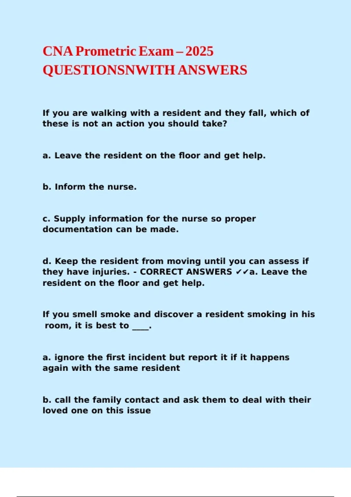 CNA Prometric Exam – 2025 QUESTIONSNWITH ANSWERS